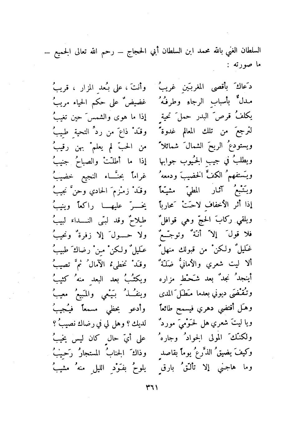السلطان الغني بالله محمد ابن السلطان أبي الحجاج - رحم الله تعالى الجميع - ما صورته:
