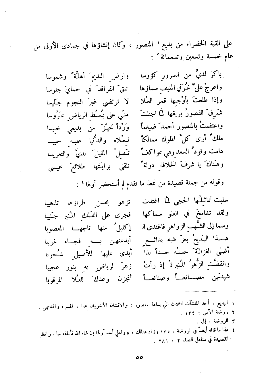 (1) البديع: أحد المنشآت الثلاث التي بناها المنصور، والاثنتان الأخريان هما: المسرة والمشتهى.