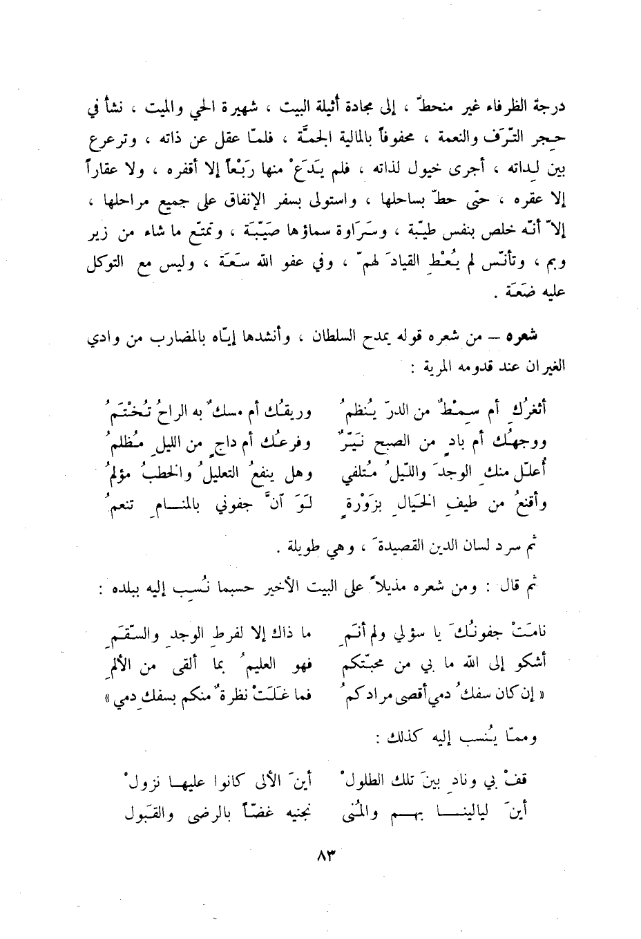 وأقنع من طيف الخيال بزورةٍ ... لو أن جفوني بالمنام تنعم ثم سرد لسان الدين القصيدة وهي طويلة.