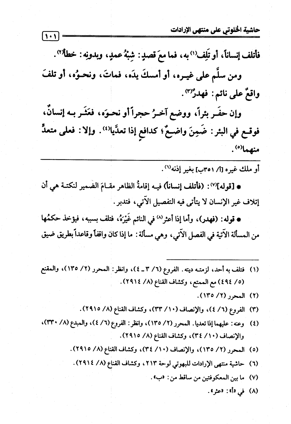 (¬6) حاشية منتهى الإرادات للبهوتي لوحة 213، وكشاف القناع (8/ 2914).