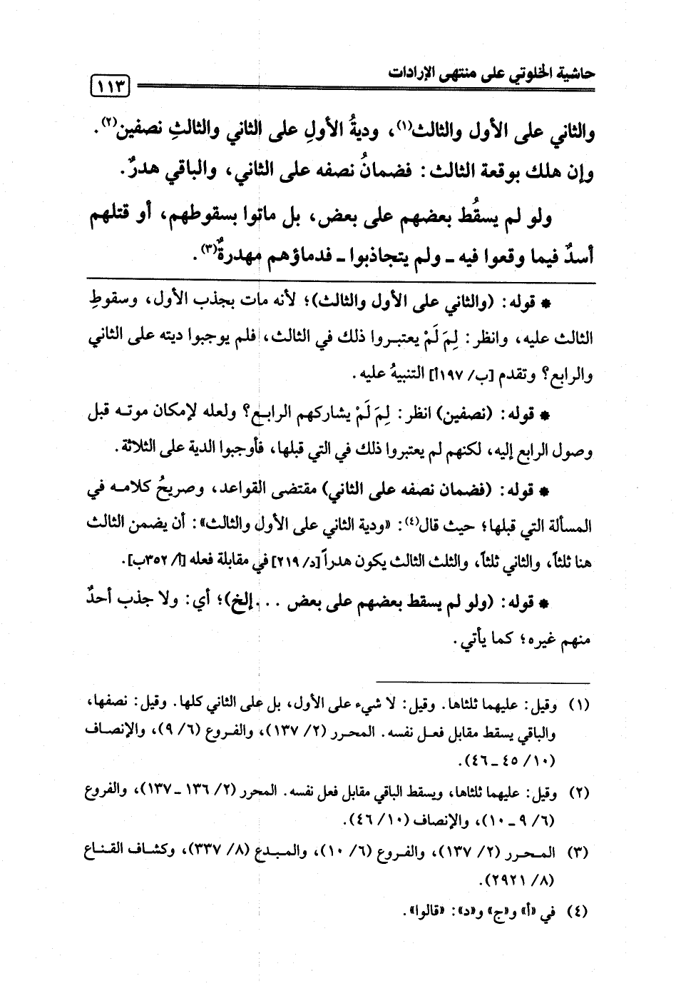 (¬1) وقيل: عليهما ثلثاها. وقيل: لا شيء على الأول، بل على الثاني كلها. وقيل: نصفها، والباقي يسقط مقابل فعل نفسه. المحرر (2/ 137)، والفروع (6/ 9)، والإنصاف (10/ 45 - 46).