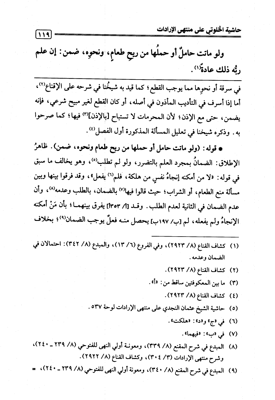 (¬8) المبدع في شرح المقنع (8/ 339)، ومعونة أولي النهى للفتوحي (8/ 239 - 240)، وشرح منتهى الإرادات (3/ 304)، وكشاف القناع (8/ 2922).