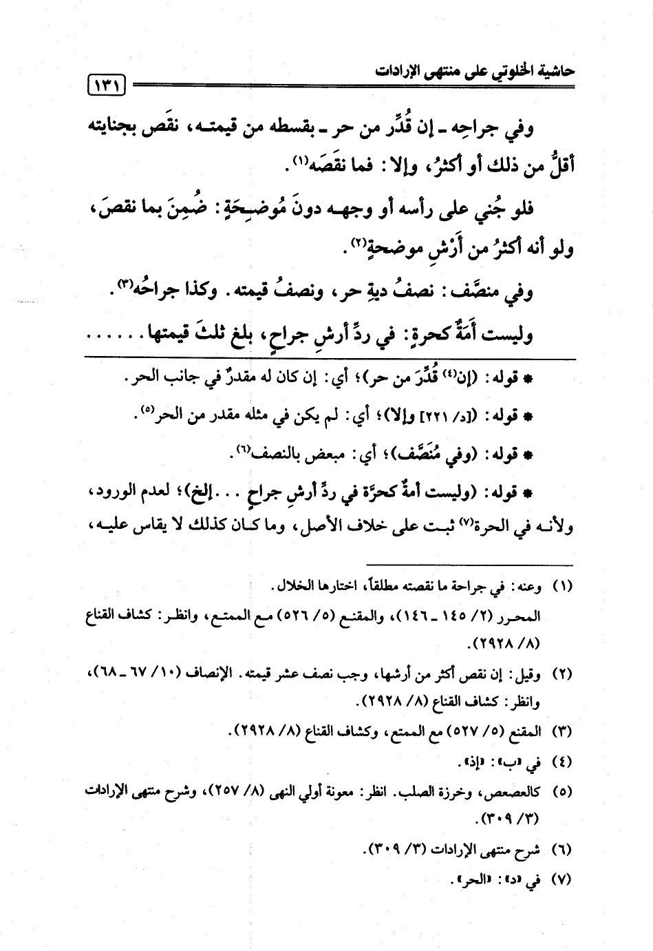 وليست أَمَةٌ كحرةٍ: في ردِّ أرشِ جراحٍ، بلغ ثلثَ قيمتها. . . . . .