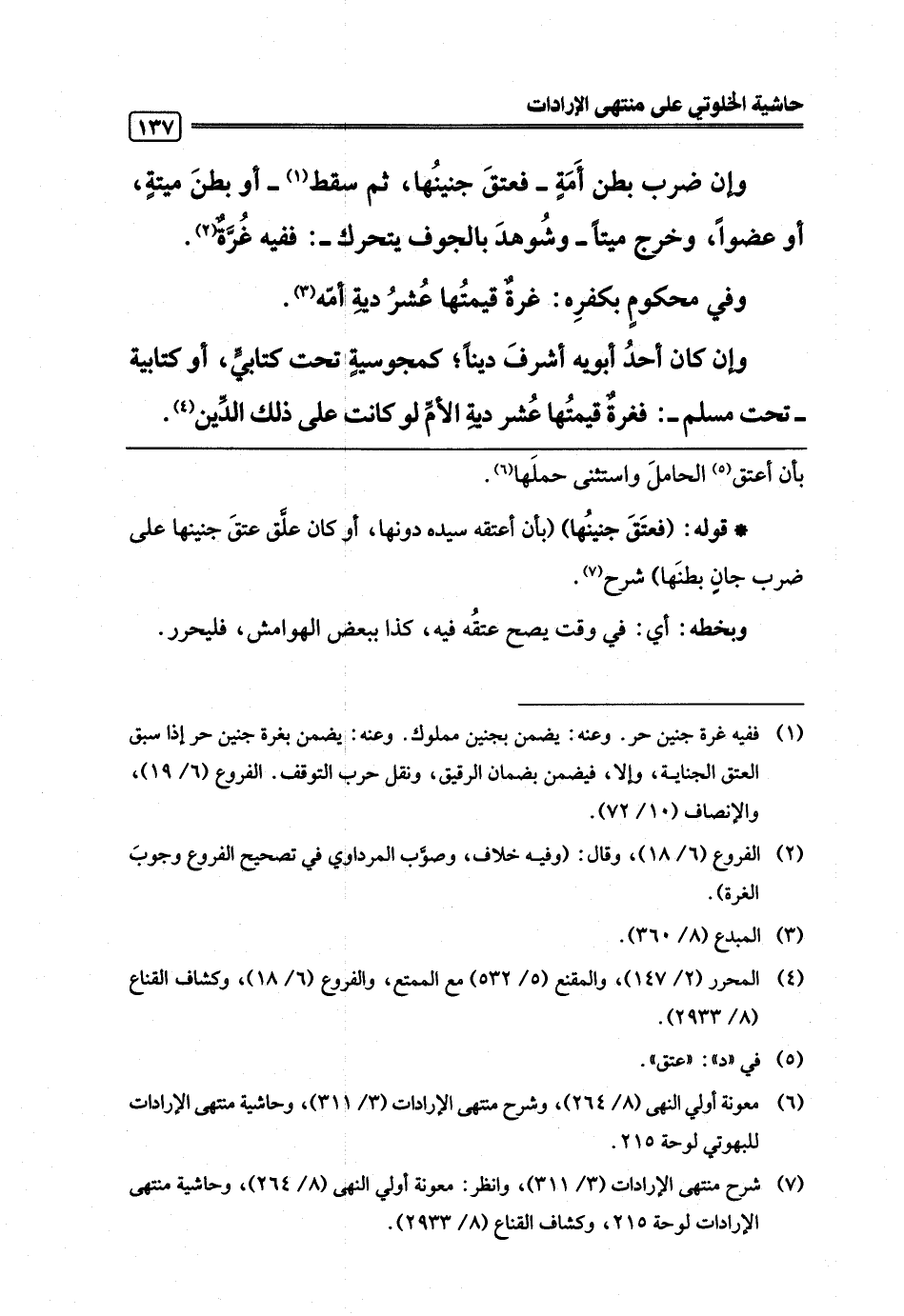 (¬7) شرح منتهى الإرادات (3/ 311)، وانظر: معونة أولي النهى (8/ 264)، وحاشية منتهى الإرادات لوحة 215، وكشاف القناع (8/ 2933).