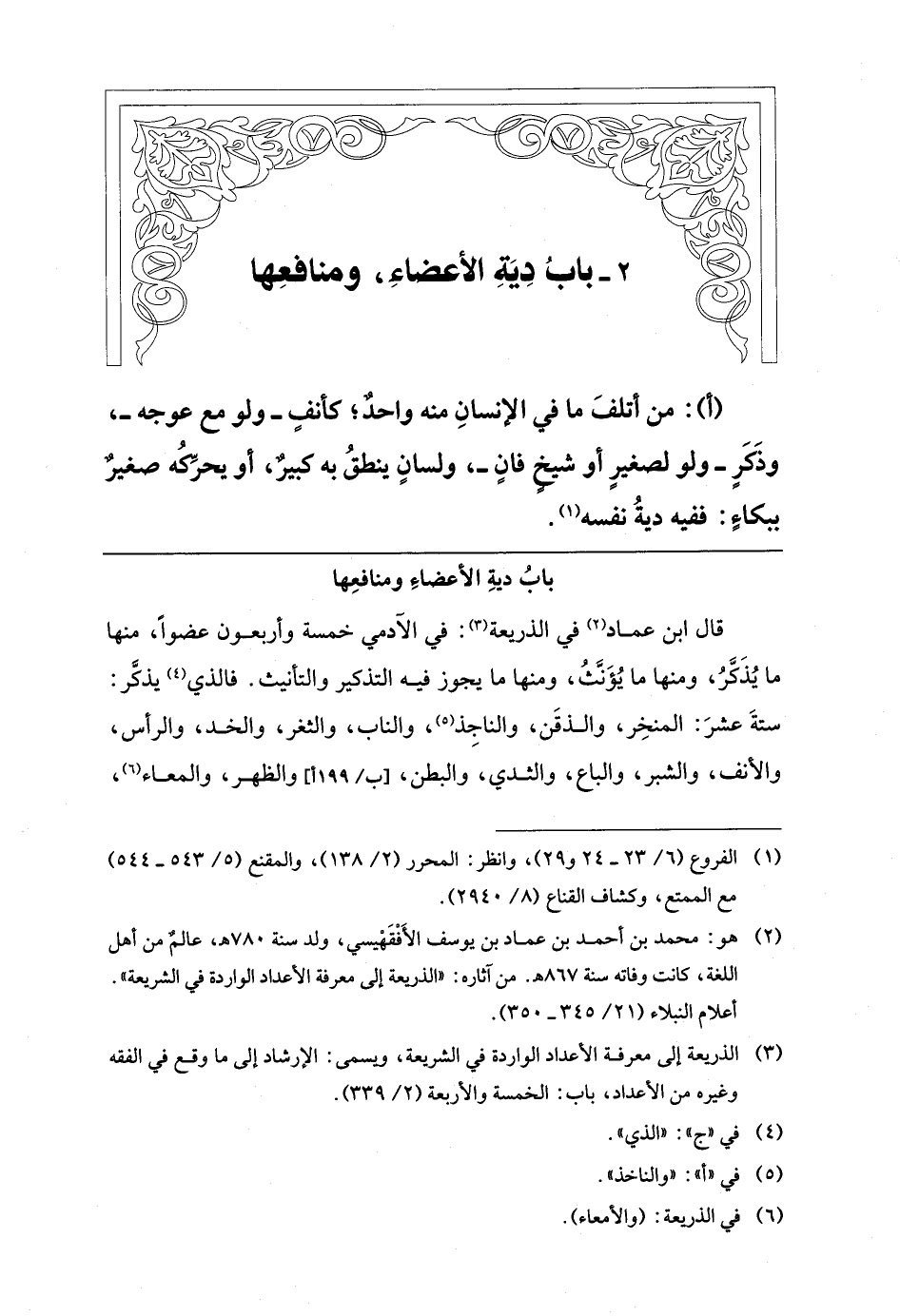 2 - بابُ دِيَةِ الأعضاءِ، ومنافعِها