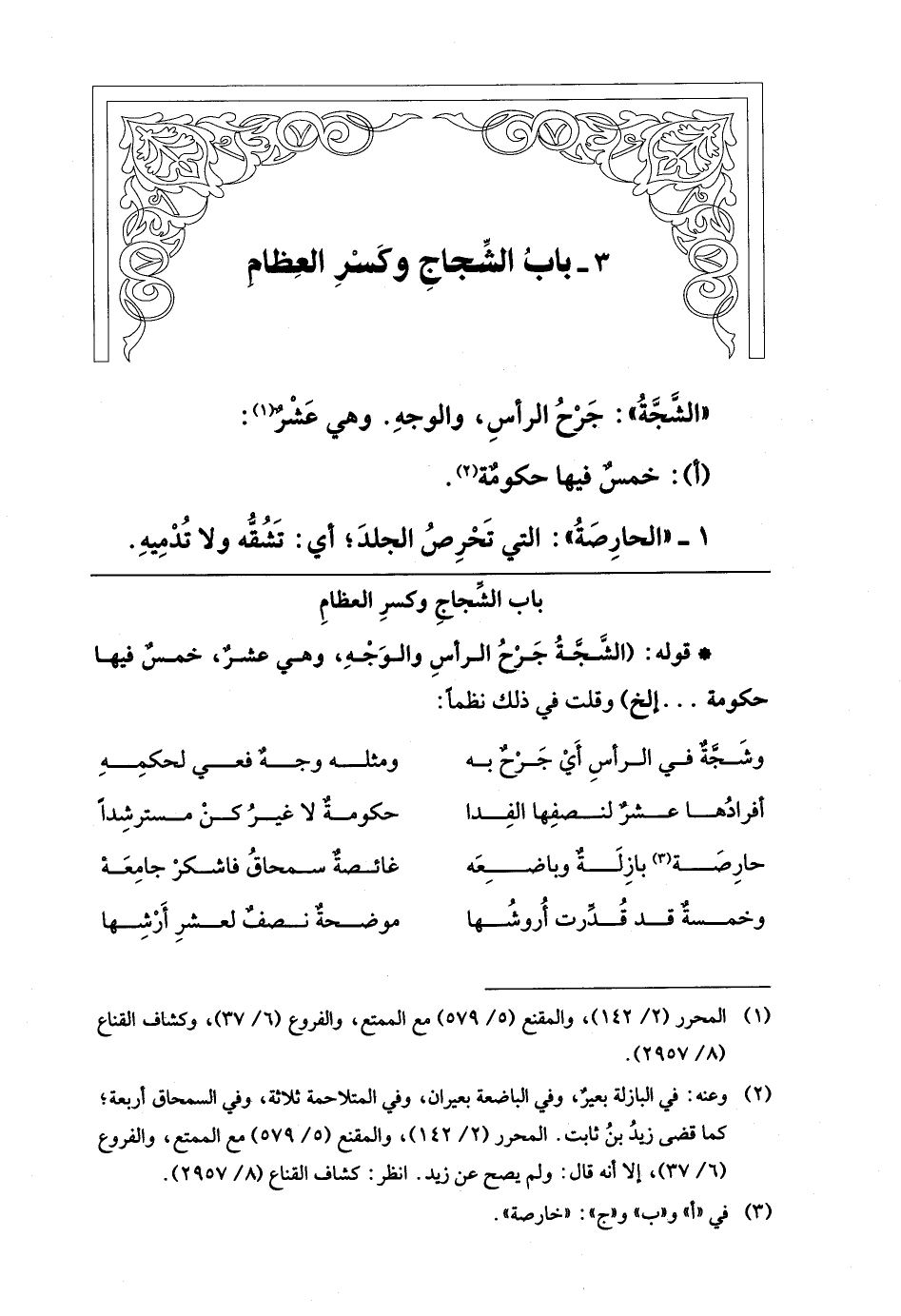 3 - بابُ الشِّجاجِ وكَسْرِ العِظامِ