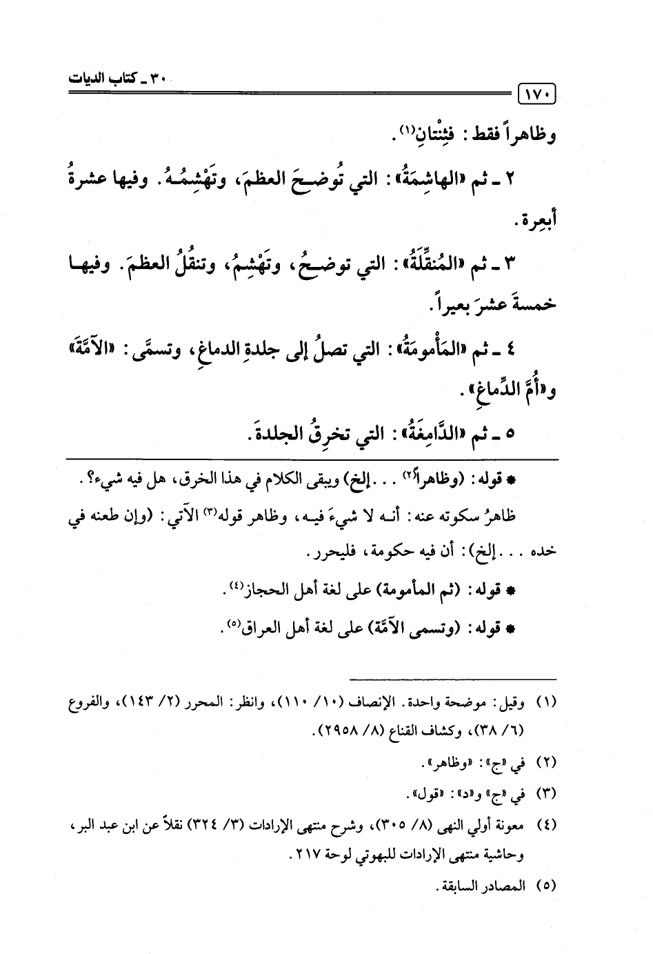 2 - ثم "الهاشِمَةُ": التي تُوضحَ العظمَ، وتَهْشِمُهُ. وفيها عشرةُ أبعِرة.