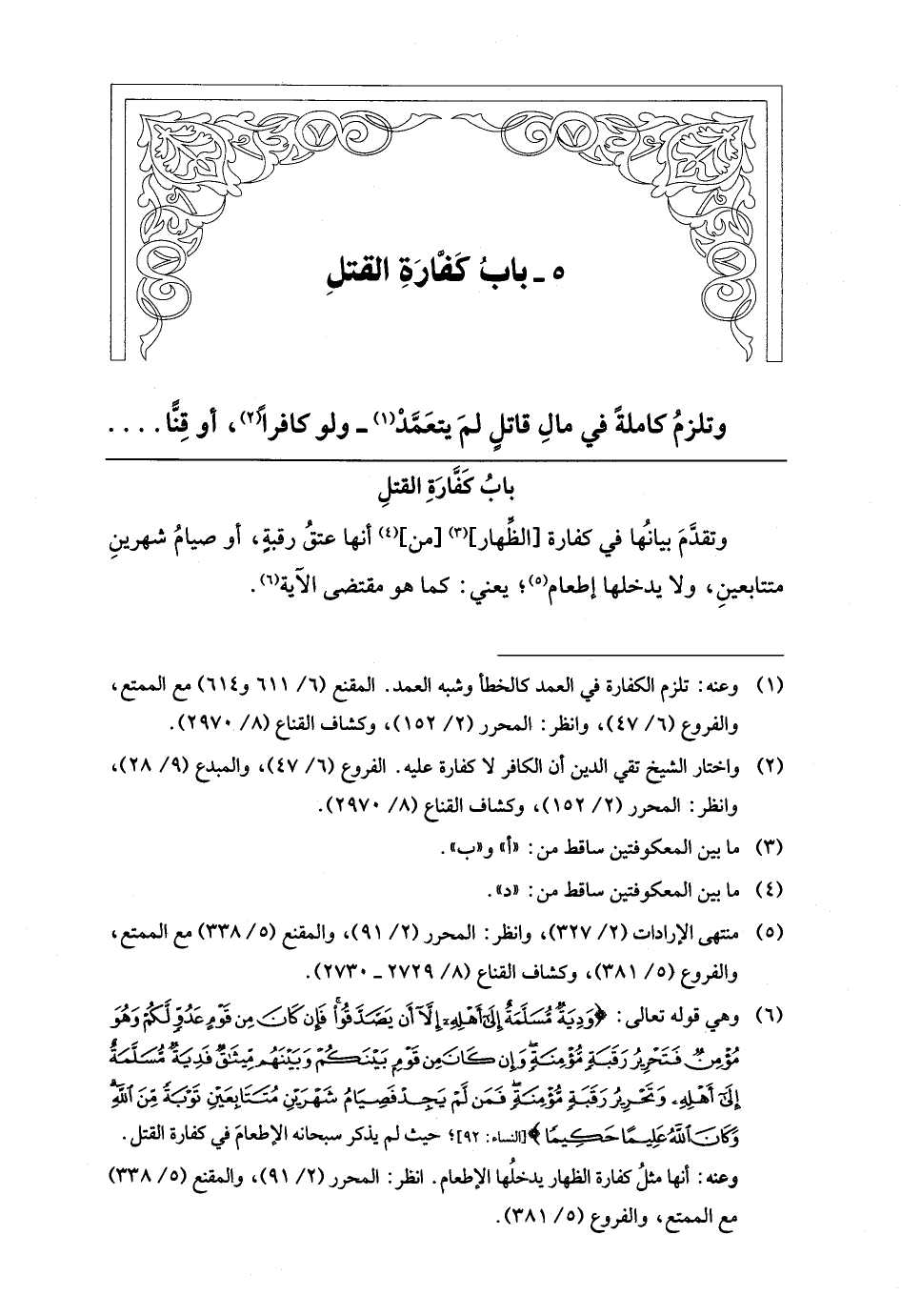 (¬2) واختار الشيخ تقي الدين أن الكافر لا كفارة عليه. الفروع (6/ 47)، والمبدع (9/ 28)، وانظر: المحرر (2/ 152)، وكشاف القناع (8/ 2970).
