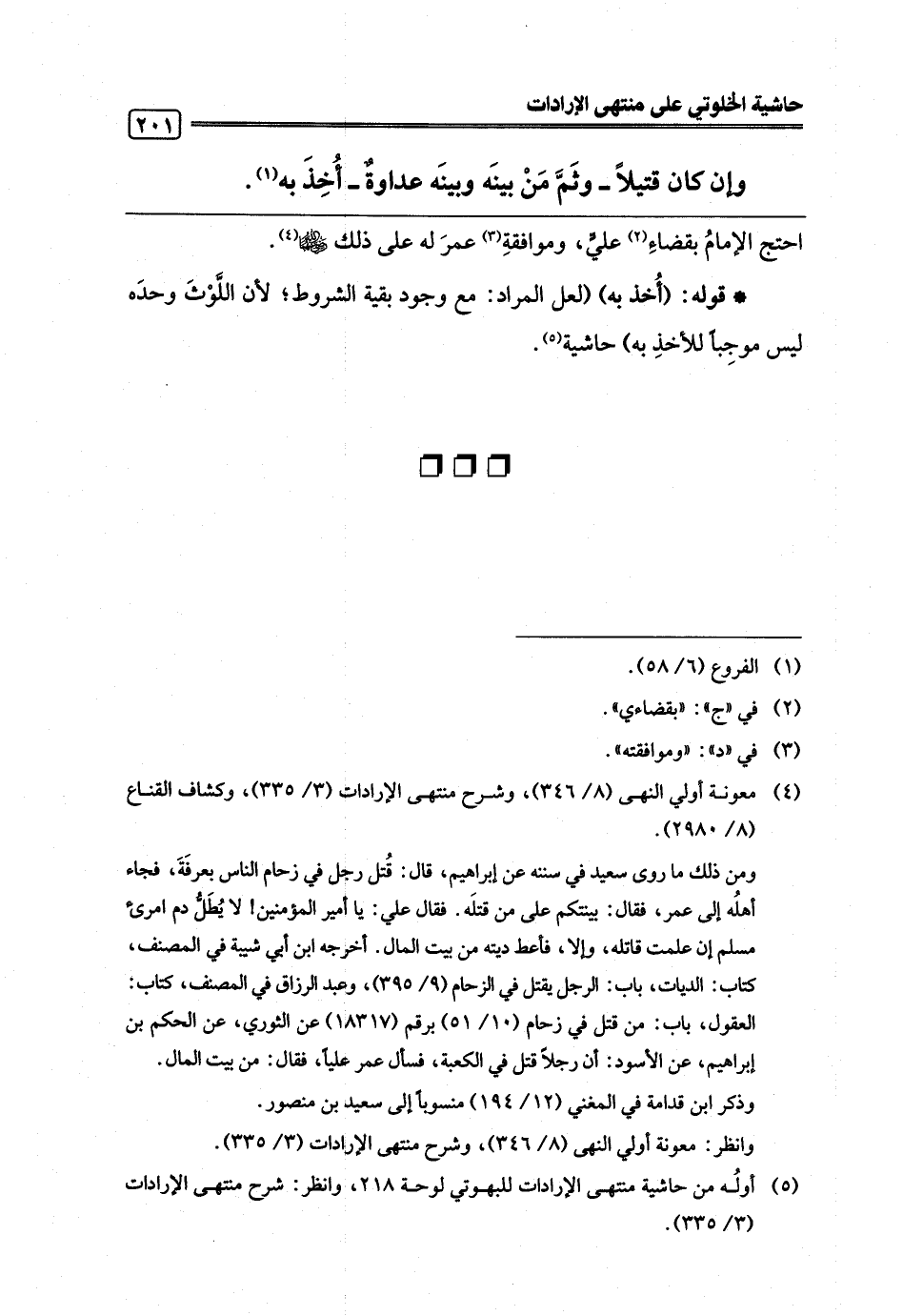(¬4) معونة أولي النهى (8/ 346)، وشرح منتهى الإرادات (3/ 335)، وكشاف القناع (8/ 2980).