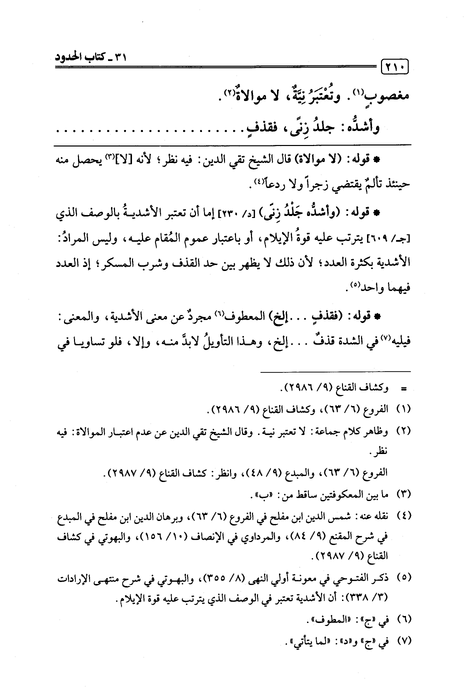 (¬5) ذكر الفتوحي في معونة أولي النهى (8/ 355)، والبهوتي في شرح منتهى الإرادات (3/ 338): أن الأشدية تعتبر في الوصف الذي يترتب عليه قوة الإيلام.