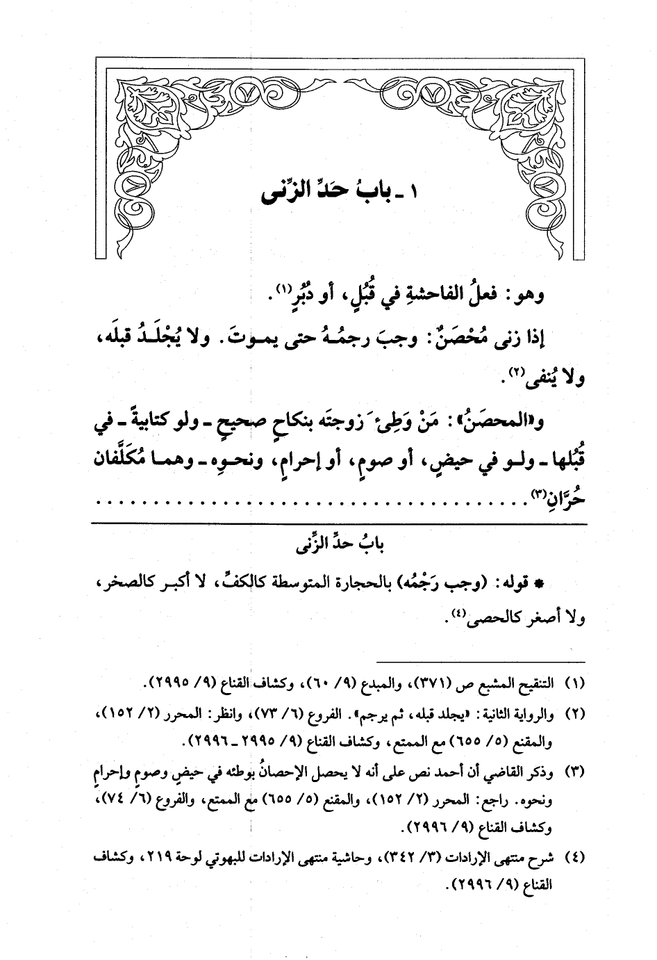 (¬4) شرح منتهى الإرادات (3/ 342)، وحاشية منتهى الإرادات للبهوتي لوحة 219، وكشاف القناع (9/ 2996).