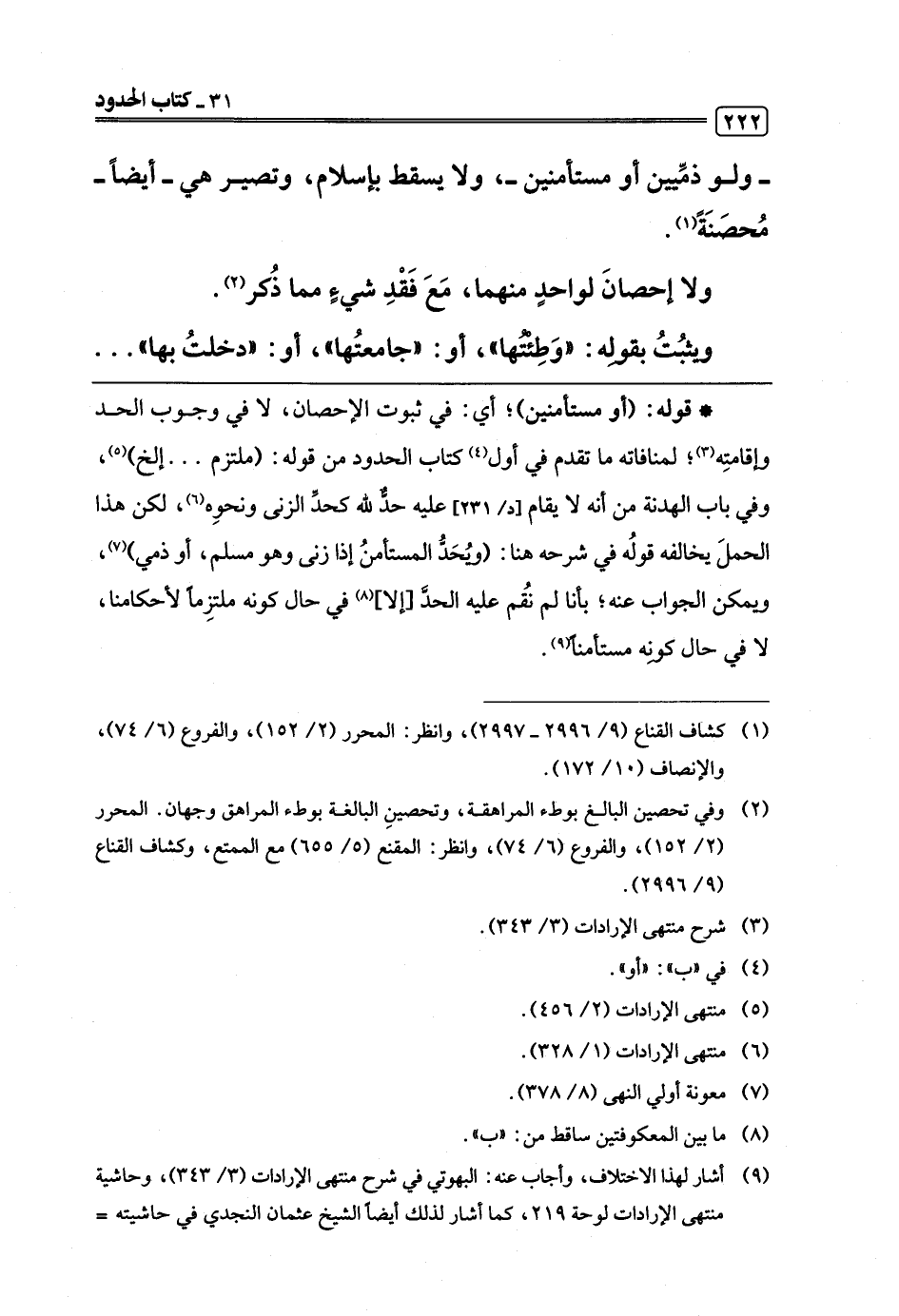 (¬2) وفي تحصين البالغ بوطء المراهقة، وتحصينِ البالغة بوطء المراهق وجهان. المحرر (2/ 152)، والفروع (6/ 74)، وانظر: المقنع (5/ 655) مع الممتع، وكشاف القناع (9/ 2996).