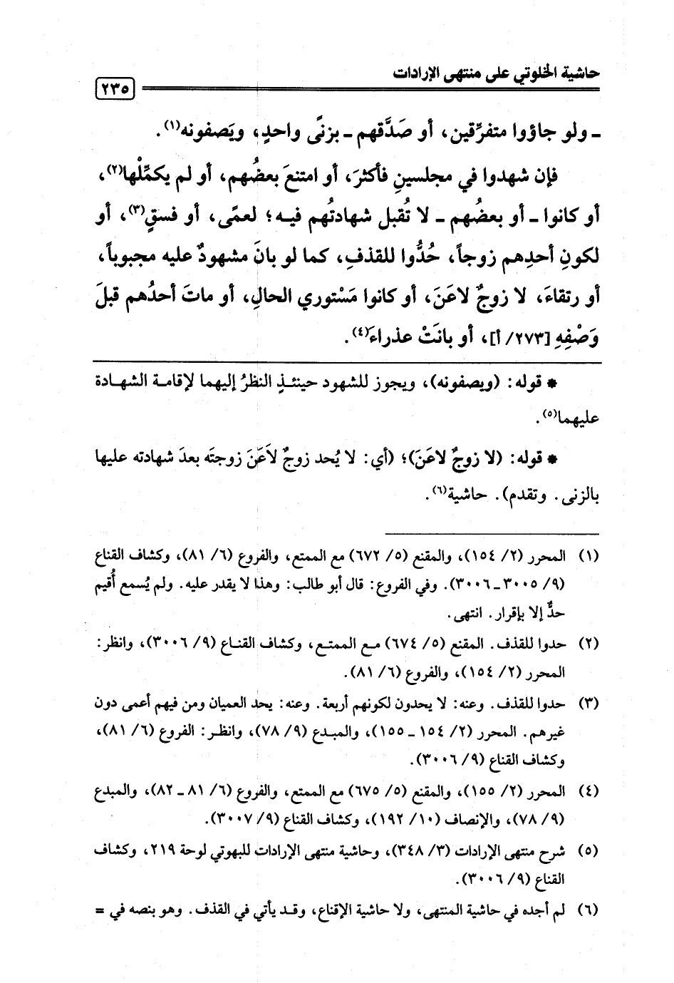 (¬5) شرح منتهى الإرادات (3/ 348)، وحاشية منتهى الإرادات للبهوتي لوحة 219، وكشاف القناع (9/ 3006).