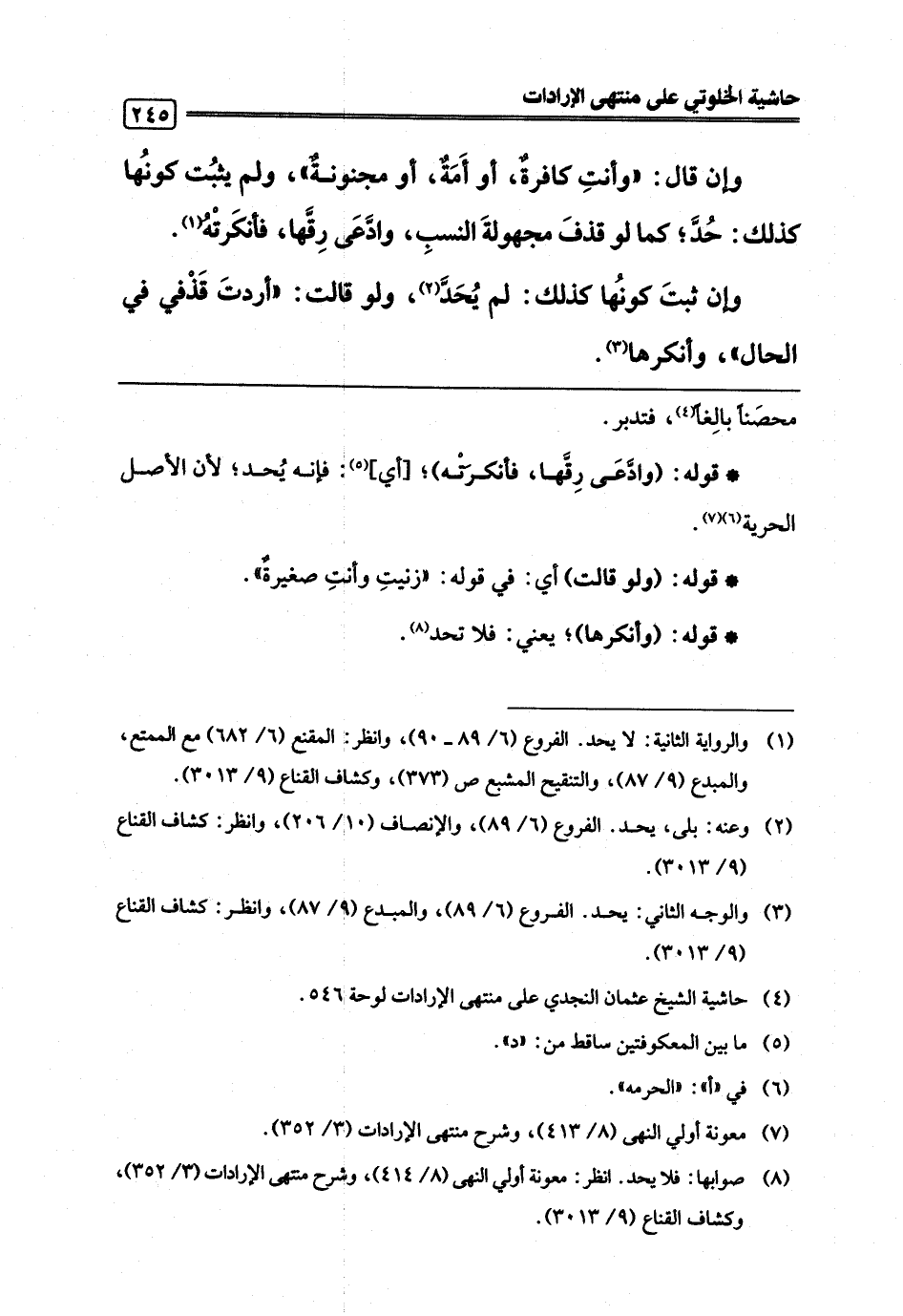 (¬8) صوابها: فلا يحد. انظر: معونة أولي النهى (8/ 414)، وشرح منتهى الإرادات (3/ 352)، وكشاف القناع (9/ 3013).