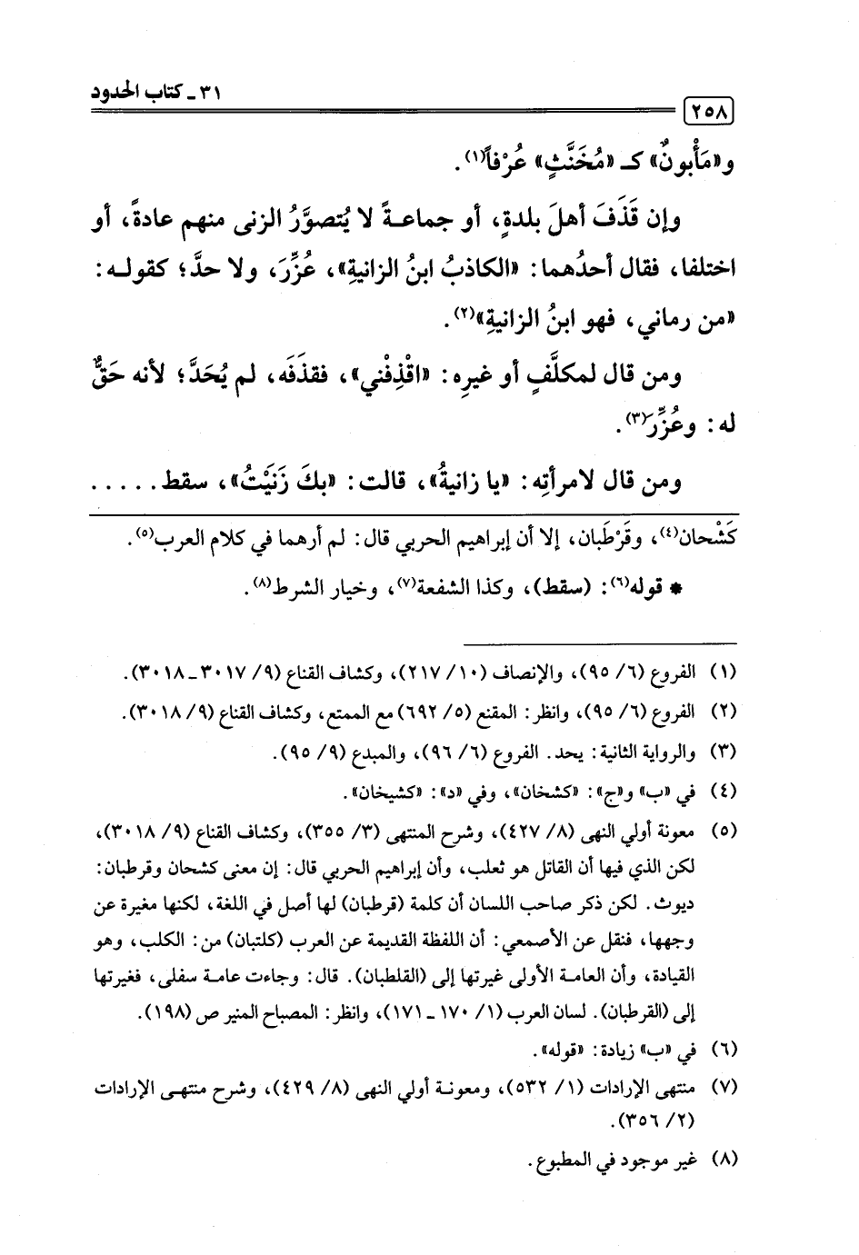 (¬7) منتهى الإرادات (1/ 532) , ومعونة أولى النهي (8/ 429) , وشرح منتهى الإرادت (2/ 356).