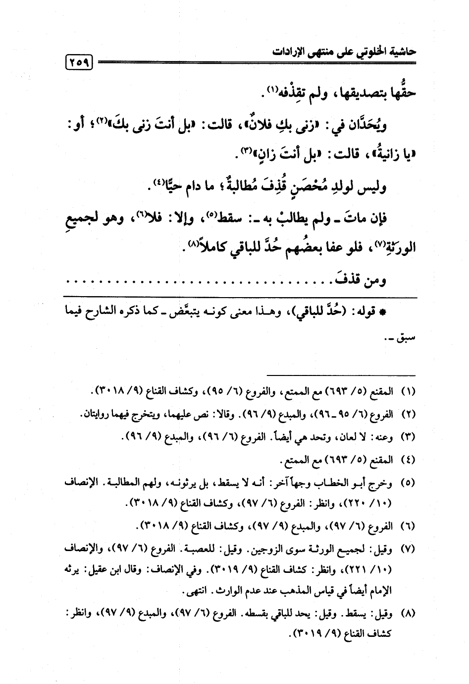 (¬8) وقيل: يسقط. وقيل: يحد للباقي بقسطه. الفروع (6/ 97)، والمبدع (9/ 97)، وانظر: كشاف القناع (9/ 3019).