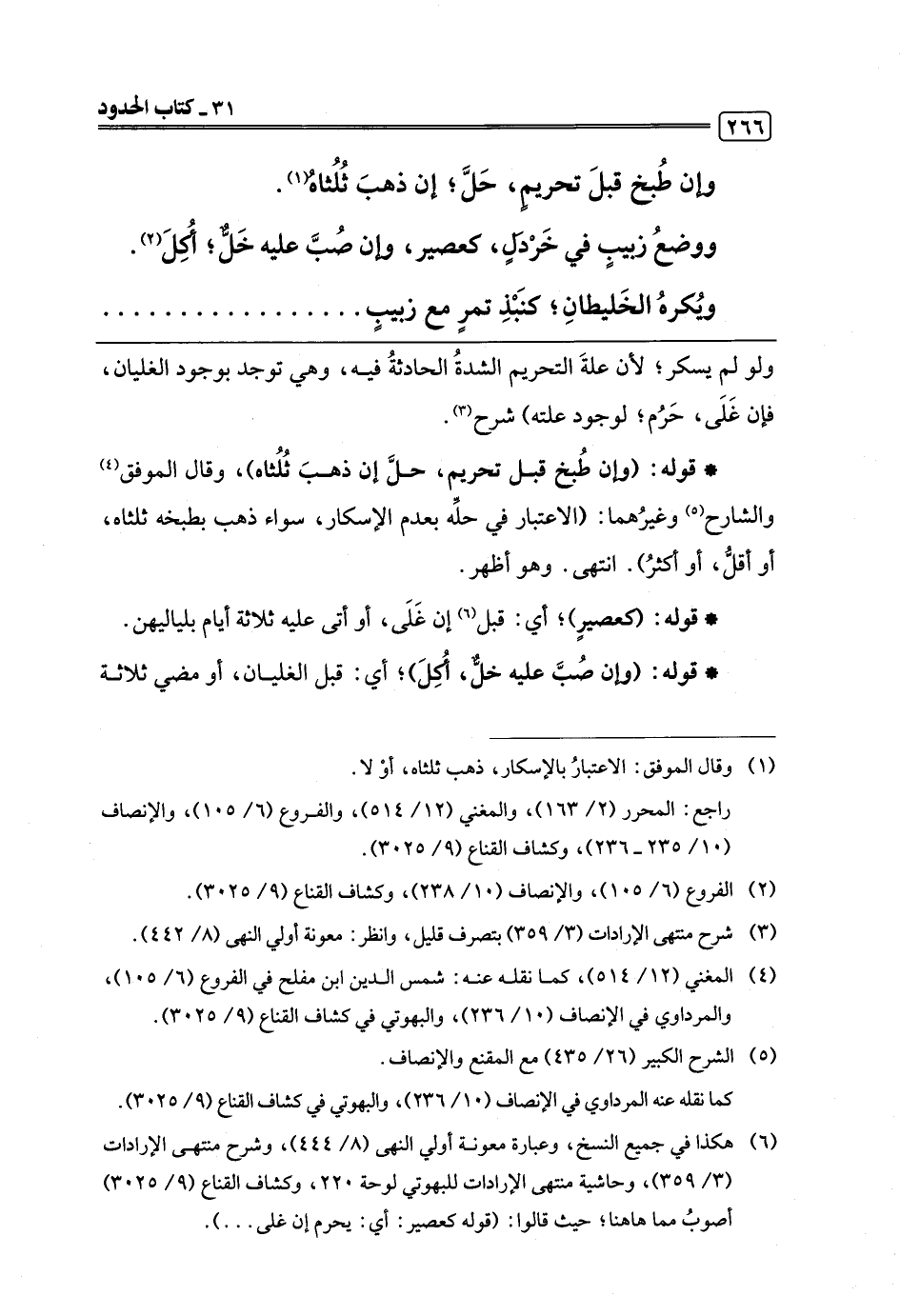(¬6) هكذا في جميع النسخ، وعبارة معونة أولي النهى (8/ 444)، وشرح منتهى الإرادات (3/ 359)، وحاشية منتهى الإرادات للبهوتي لوحة 220، وكشاف القناع (9/ 3025) أصوبُ مما هاهنا؛ حيث قالوا: (قوله كعصير: أي: يحرم إن غلى. . .).