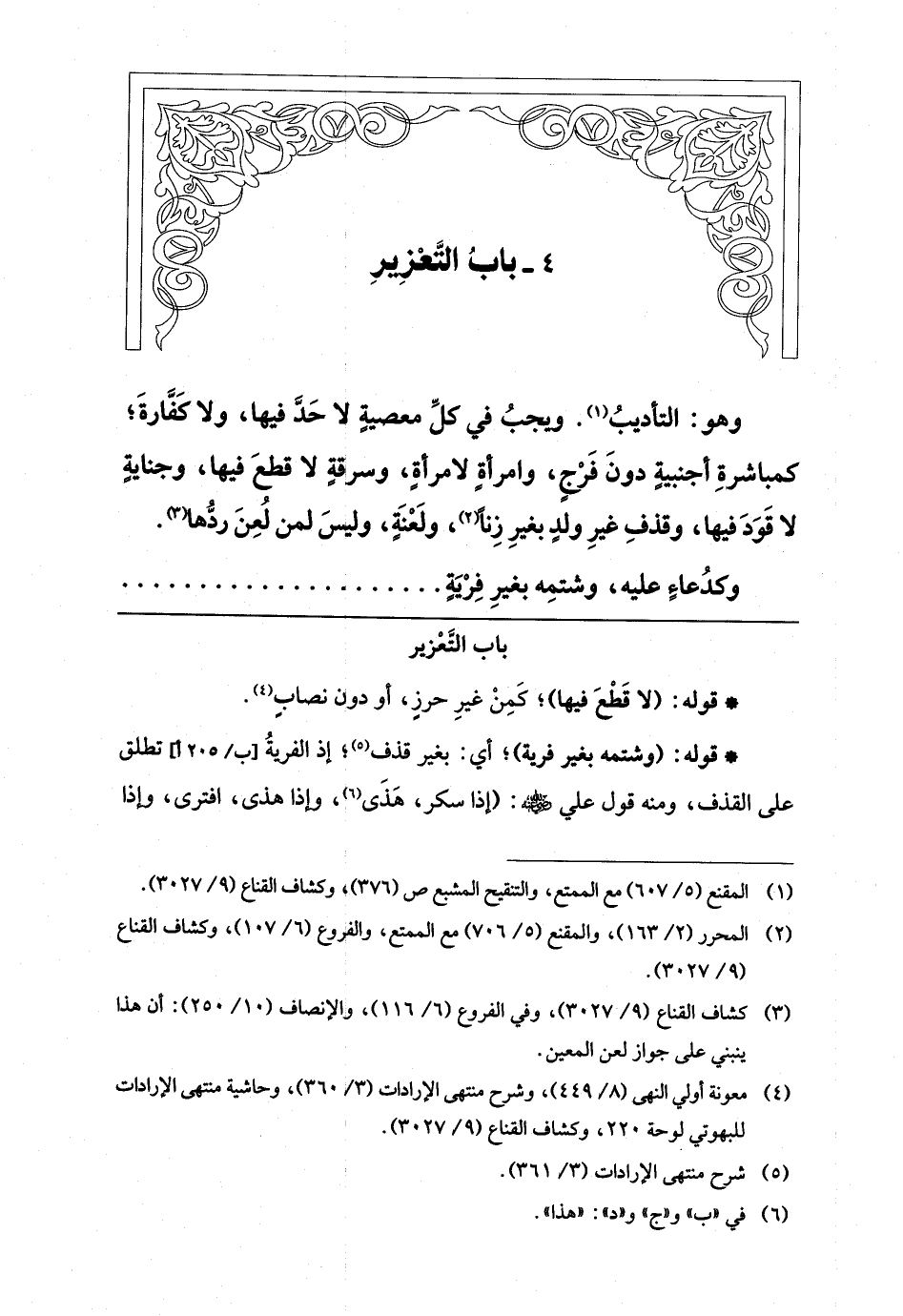 (¬4) معونة أولي النهى (8/ 449)، وشرح منتهى الإرادات (3/ 360)، وحاشية منتهى الإرادات للبهوتي لوحة 220، وكشاف القناع (9/ 3027).