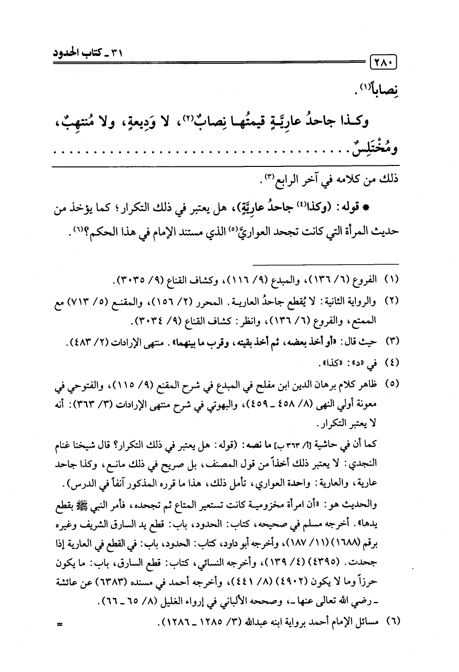 (¬2) والرواية الثانية: لا يُقطع جاحدُ العارية. المحرر (2/ 156)، والمقنع (5/ 713) مع الممتع، والفروع (6/ 136)، وانظر: كشاف القناع (9/ 3034).