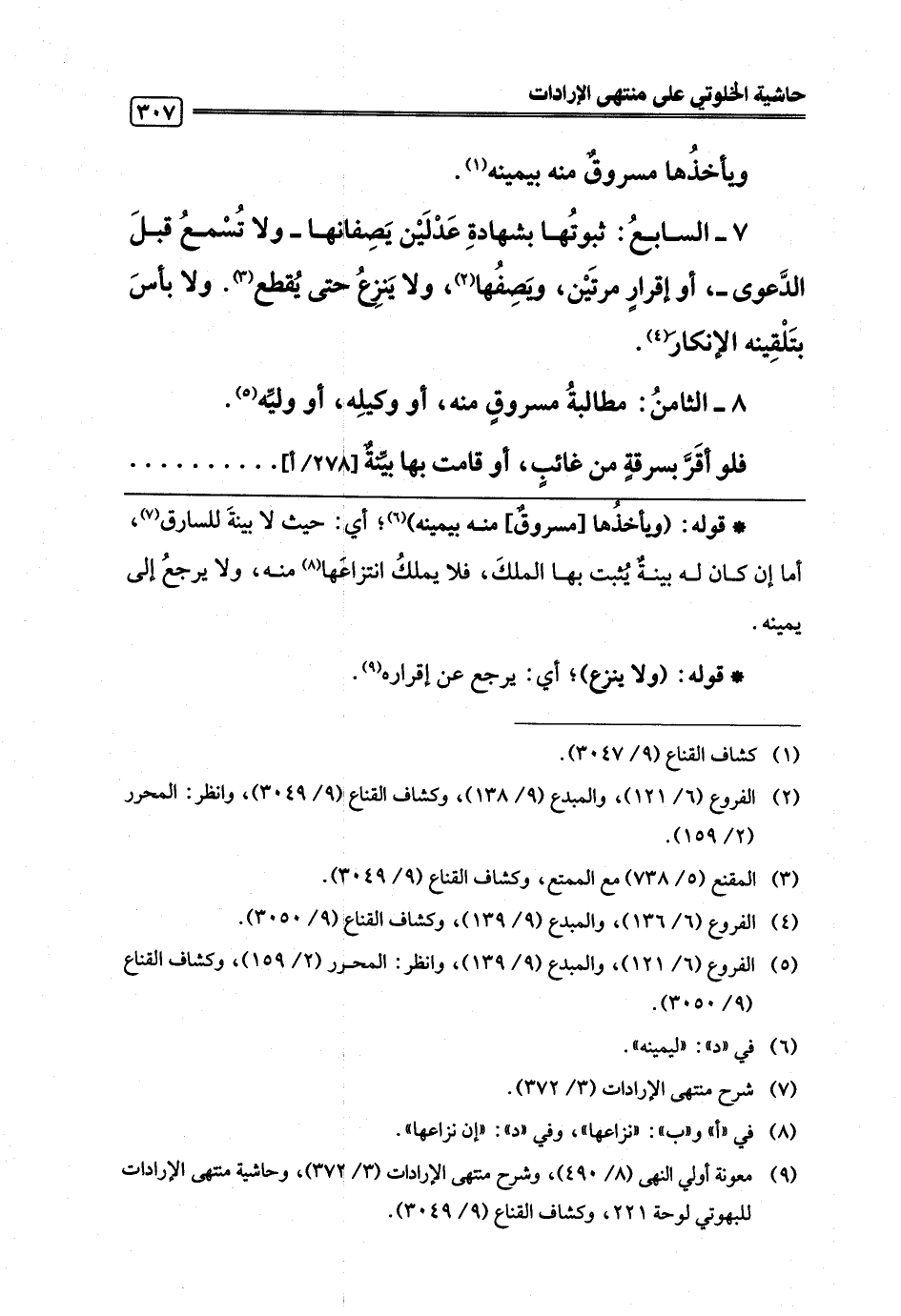 (¬9) معونة أولي النهى (8/ 490)، وشرح منتهى الإرادات (3/ 372)، وحاشية منتهى الإرادات للبهوتي لوحة 221، وكشاف القناع (9/ 3049).