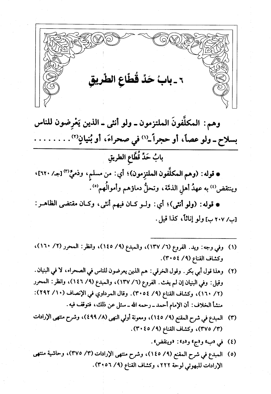 (¬5) المبدع في شرح المقنع (9/ 145)، وشرح منتهى الإرادات (3/ 375)، وحاشية منتهى الإرادات للبهوتي لوحة 222، وكشاف القناع (9/ 3056).