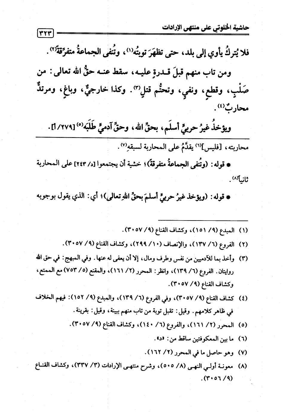(¬8) معونة أولي النهى (8/ 505)، وشرح منتهى الإرادات (3/ 337)، وكشاف القناع (9/ 3056).