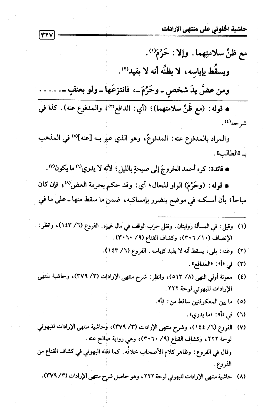 (¬8) حاشية منتهى الإرادات للبهوتي لوحة 222، وهو حاصل شرح منتهى الإرادات (3/ 379).