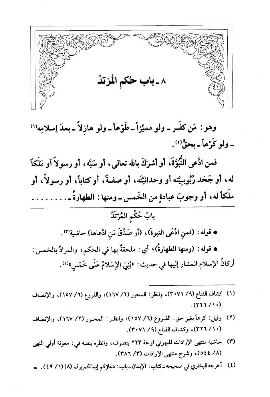 (¬3) حاشية منتهى الإرادات للبهوتي لوحة 223 بتصرف، وانظره بنصه في: معونة أولي النهى (8/ 544)، وشرح منتهى الإرادات (3/ 386).