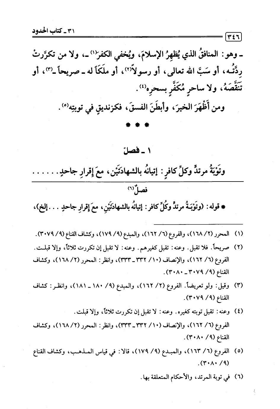 -وهو: المنافقُ الذي يُظهِرُ الإسلامَ، ويُخفي الكفرَ (¬1) -، ولا من تكرَّرتْ رِدَّتُه، أو سَبَّ اللَّه تعالى، أو رسولًا (¬2)، أو ملَكًا له -صريحًا- (¬3)، أو تَنَقَّصَهُ، ولا ساحرٍ مُكَفَّرٍ بسحرِه (¬4).