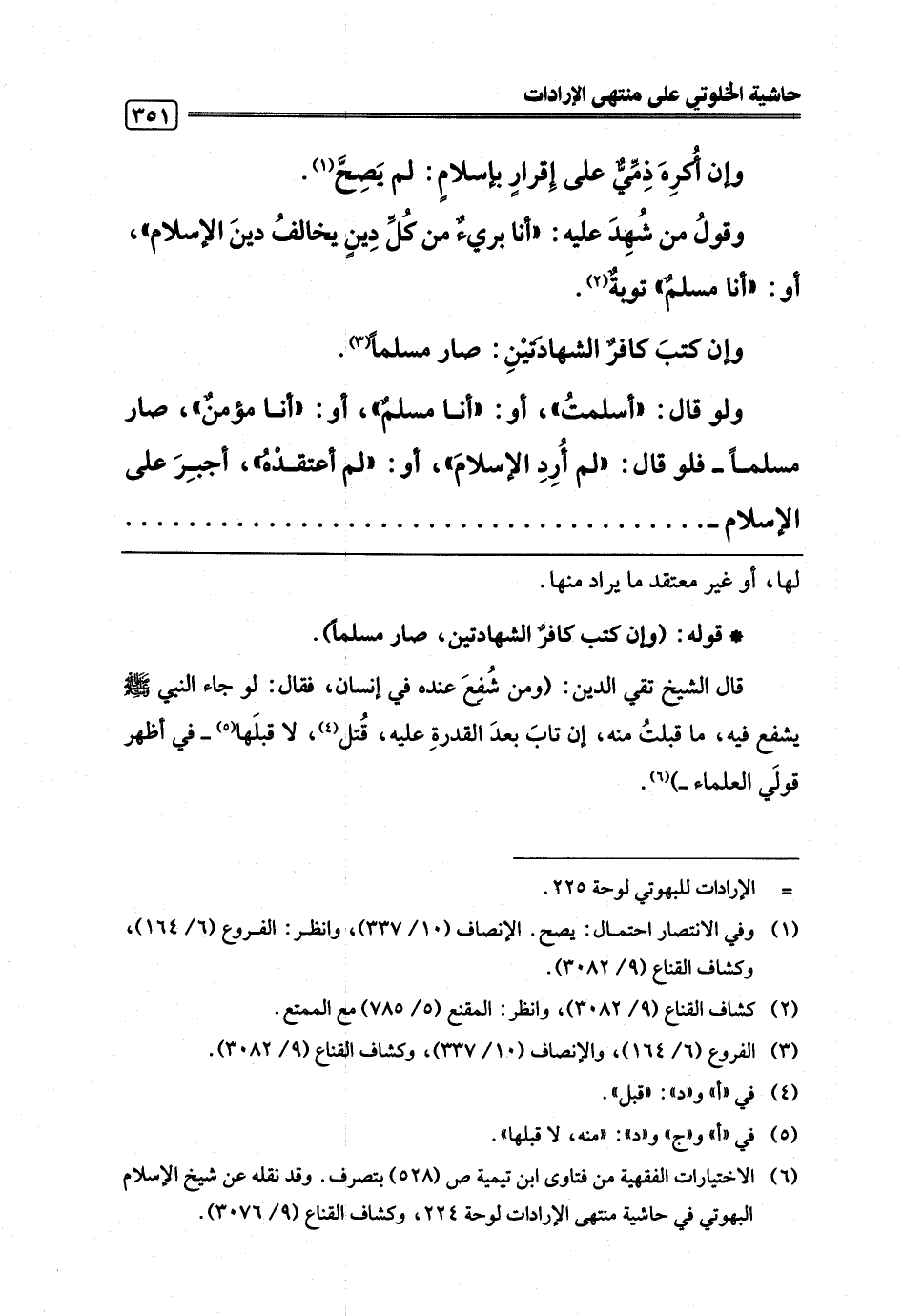 (¬6) الاختيارات الفقهية من فتاوى ابن تيمية ص (528) بتصرف. وقد نقله عن شيخ الإسلام البهوتي في حاشية منتهى الإرادات لوحة 224، وكشاف القناع (9/ 3076).