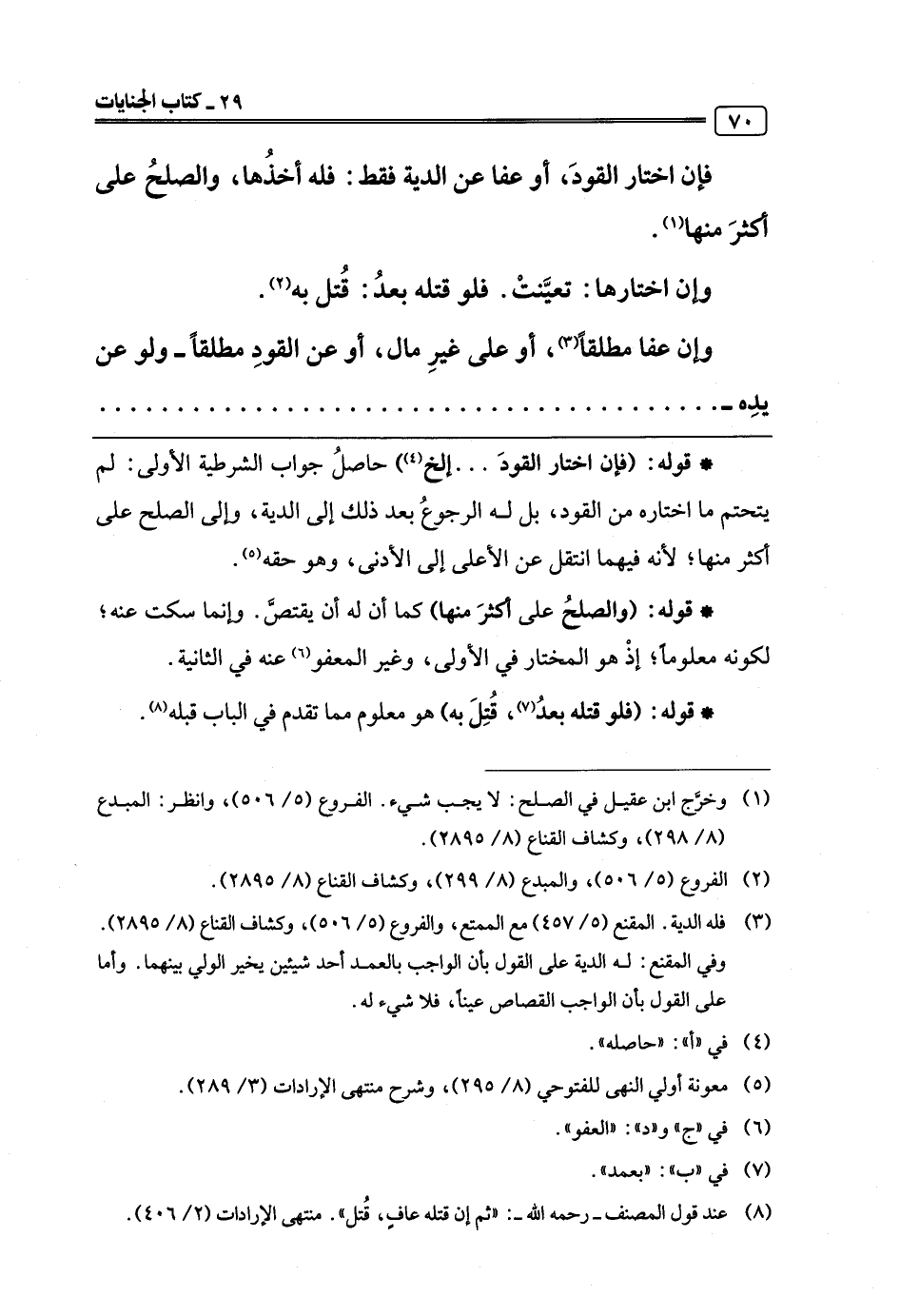 (¬8) عند قول المصنف -رحمه اللَّه-: "ثم إن قتله عافٍ، قُتل". منتهى الإرادات (2/ 406).