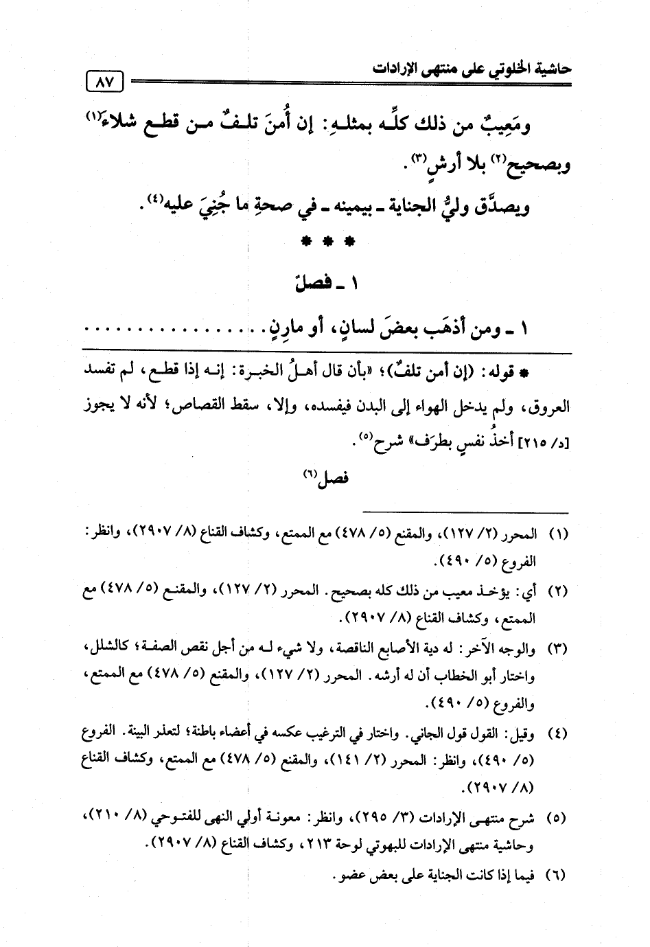 (¬5) شرح منتهى الإرادات (3/ 295)، وانظر: معونة أولي النهي للفتوحي (8/ 210)، وحاشية منتهى الإرادات للبهوتي لوحة 213، وكشاف القناع (8/ 2907).