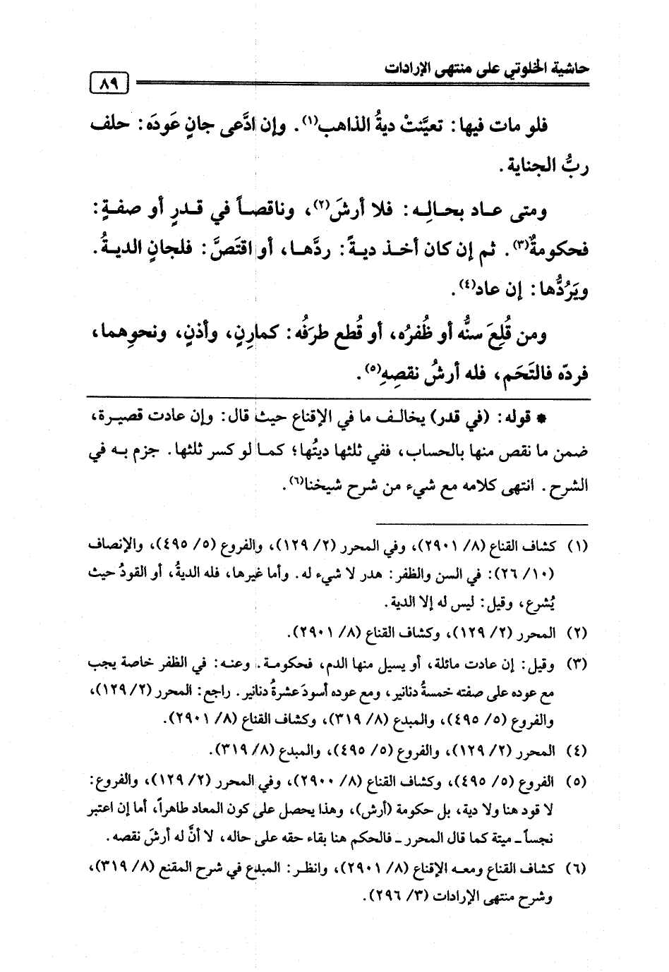 (¬6) كشاف القناع ومعه الإقناع (8/ 2901)، وانظر: المبدع في شرح المقنع (8/ 319)، وشرح منتهى الإرادات (3/ 296).
