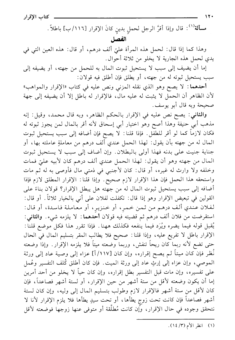(¬1) انظر الأم (3/ 14)