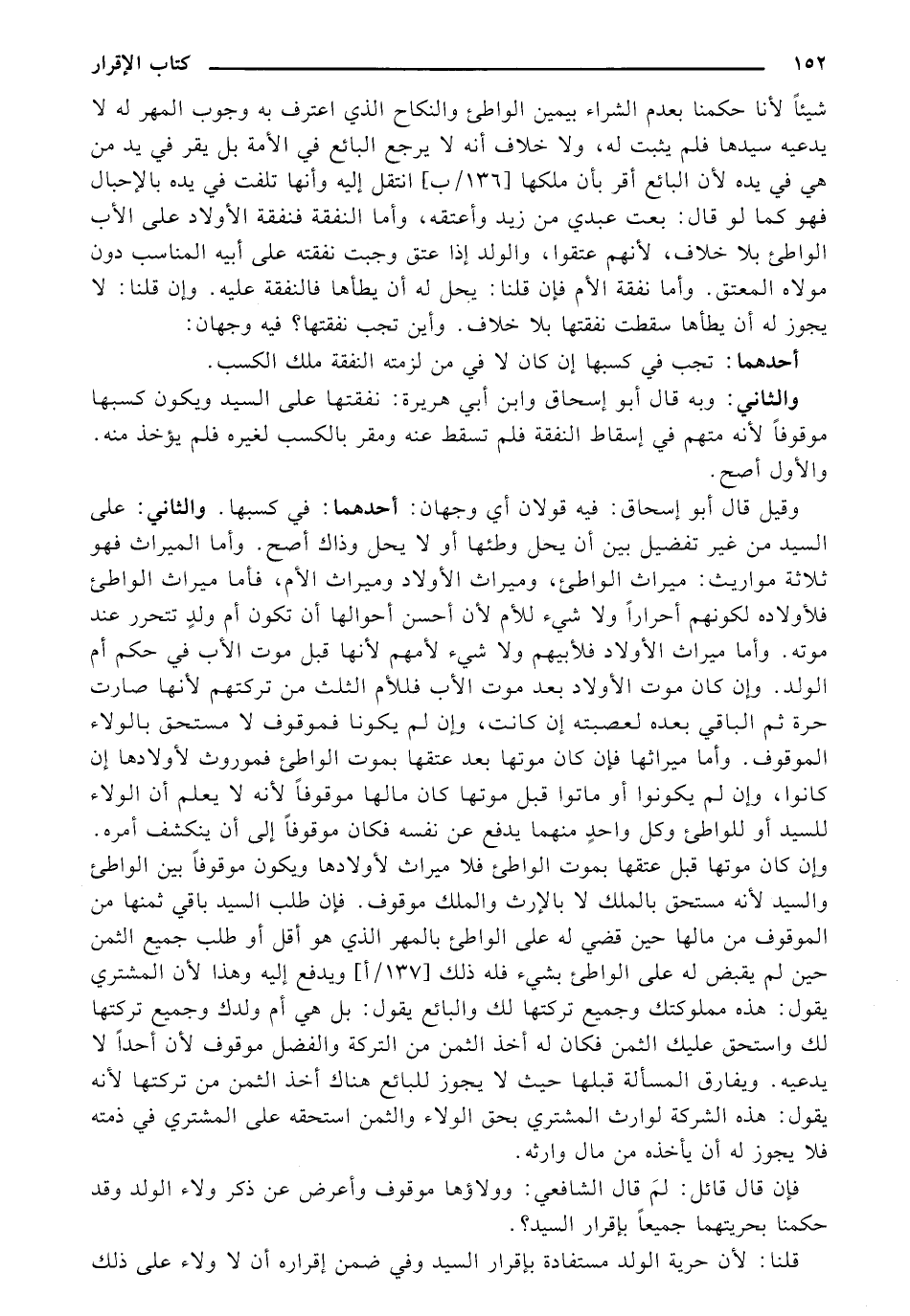 وقيل قال أبو إسحاق: فيه قولان أي وجهان: أحدهما: في كسبها. والثاني: على السيد من غير تفضيل بين أن يحل وطئها أو لا يحل وذاك أصح. وأما الميراث فهو ثلاث مواريث: ميراث الواطئ، وميراث الأولاد الأم، فأما ميراث الواطئ فلأولاده لكونهم أحرارًا ولا شيء للأم لأن أحسن أحوالها أن تكون أم ولدٍ تتحرر عند موته. وأما ميراث الأولاد فلأبيهم ولا شيء لأمهم قبل موت الأب في حكم أم الولد. وإن كان موت الأولاد بعد موت الأب فللأم الثلث من تركتهم لأنها صارت حرة ثم الباقي بعده لعصبته إن كانت، وإن لم يكونا فموقوف لا مستحق بالولاء الموقوف. وأما ميراثها فإن كان موتها بعد عتقها بموت الواطئ فموروث لأولادها إن كانوا، وإن لم يكونوا أو ماتوا قبل موتها كان مالها موقوفًا لأنه لا يعلم أن الولاء للسيد أو للواطئ وكل واحٍد منهما يدفع عن نفسه فكان موقوفًا إلى أن ينكشف أمره. وإن كان موتها قبل عتقها بموت الواطئ فلا ميراث لأولادها ويكون موقوفًا بين الواطئ والسيد لأنه مستحق بالملك لا بالإرث والملك موقوف. فإن طلب السيد باقي ثمنها من الموقوف من مالها حين قضي له على الواطئ بالمهر الذي هو أقل أو طلب جميع الثمن حين لم يقبض له الواطئ بشيء فله ذلك [137/أ (ويدفع إليه وهذا لأن المشتري يقول: هذه مملوكتك وجميع تركتها لك والبائع يقول: بل هي أم ولدك واستحق عليك الثمن فكان له اخذ الثمن م التركة والفضل موقوف لأن أحداً لا يدعيه. ويفارق المسألة قبلها حيث لا يجوز للبائع هناك أخذ الثمن من تركتها لأنه يقول: هذه الشركة لوارث المشتري بحق الولاء والثمن استحقه على المشتري في ذمته فلا يجوز له أن يأخذه من مال وارثه.
