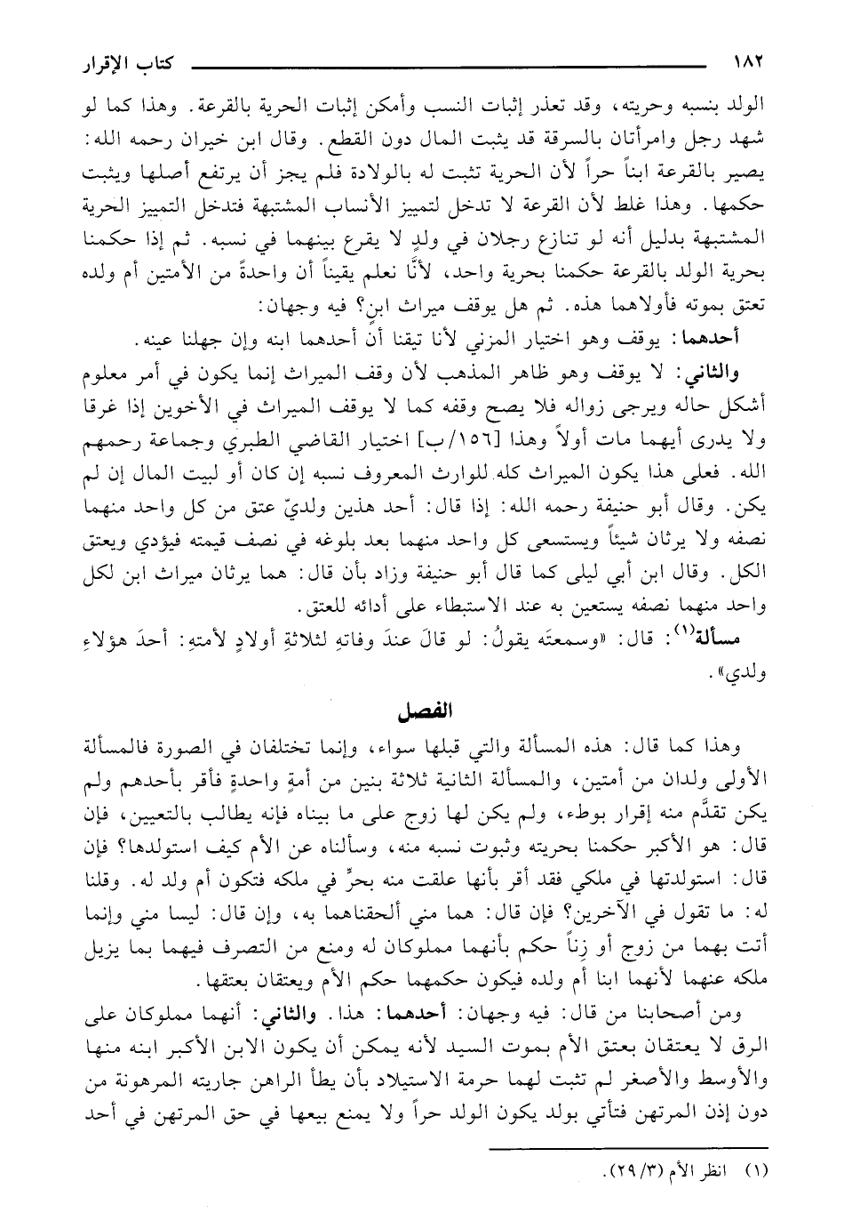 الولد بنسبه وحريته، وقد تعذر إثبات النسب وأمكن إثبات الحرية بالقرعة. وهذا كما لو شهد رجل وامرأتان بالسرقة قد يثبت المال دون القطع. وقال ابن خيران رحمه الله: يصير بالقرعة ابنًا حرًا لأن الحرية تثبت له بالولادة فلم يجز أن يرتفع أصلها ويثبت حكمها. وهذا غلط لأن القرعة لا تدخل لتمييز الأنساب المشتبهة فتدخل التمييز الحرية المشتبهة بدليل أنه لو تنازع رجلان في ولٍد لا يقرع بينهما في نسبه. ثم إذا حكمنا بحرية الولد بالقرعة حكمنا بحرية واحد، لأَّنا نعلم يقينًا أن واحدًة من الأمتين أم ولده تعتق بموته فأولاهما هذه. ثم هل يوقف ميراث ابن؟ فيه وجهان: