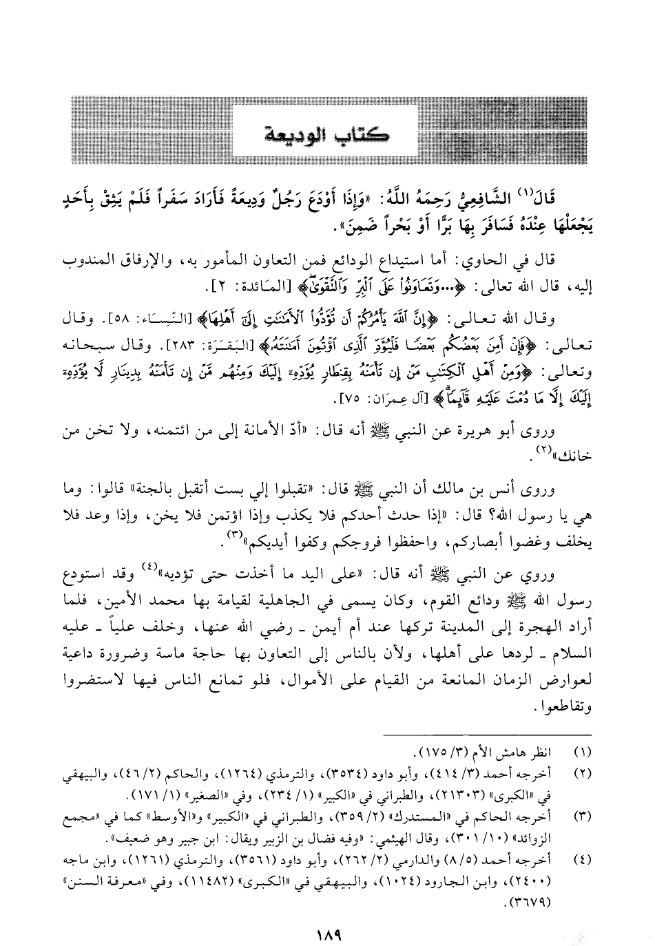 قال في الحاوي: أما استيداع الودائع فمن التعاون المأمور به، والإرفاق المناوب إليه، قال الله تعالى: {وَتَعَاوَنُوا عَلَى الْبِرِّ وَالتَّقْوَى} [المائدة:2].