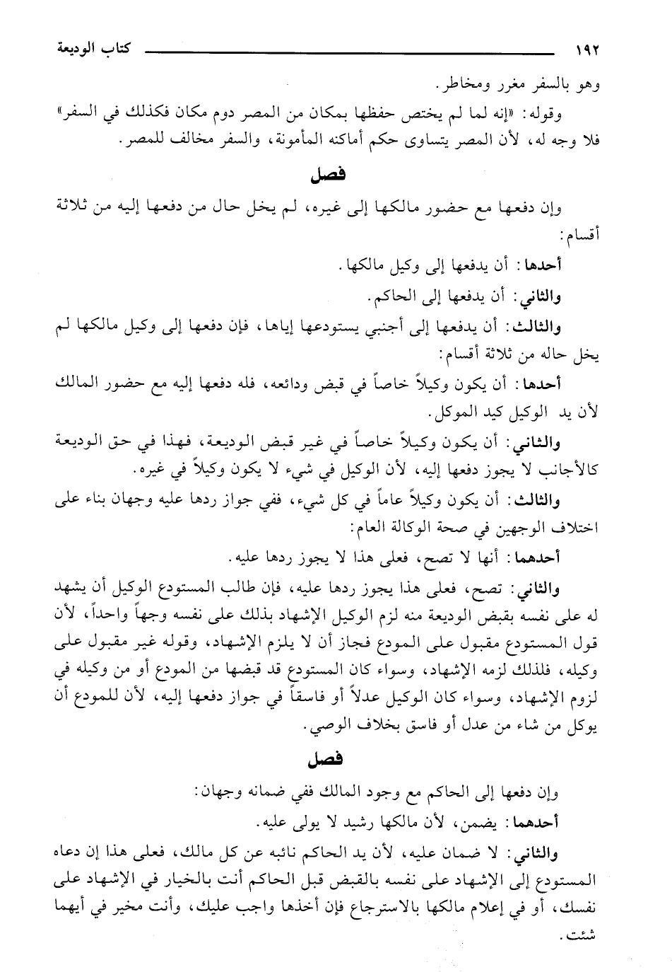 والثاني: أن يكون وكيلاً خاصاً في غير قبض الوديعة، فهذا في حق الوديعة كالأجانب لا يجوز دفعها إليه، لأن الوكيل في شيء لا يكون وكيلاً في غيره.