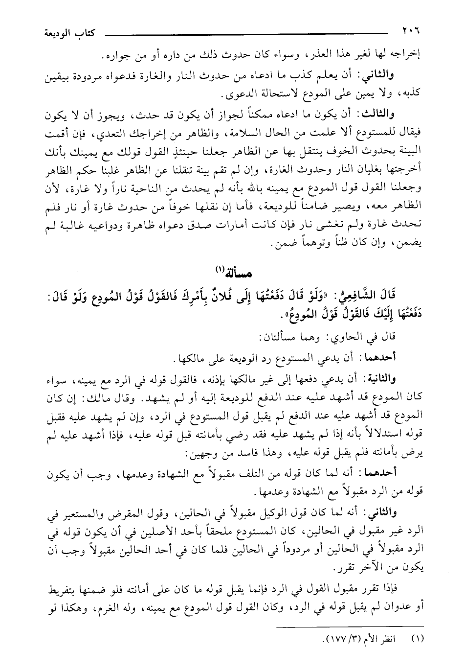والثاني: أنه لما كان قول الوكيل مقبولاً في الحالتين، وقول المقرض والمستعير في الرد غير مقبول في الحالتين، كان المستودع ملحقاً بأحد الأصلين في أن يكون قوله في الرد مقبولاً في الحالتين أو مردوداً في الحالين فلما كان في أحد الحالين مقبولاً وجب أن يكون من الآخر تقرر.