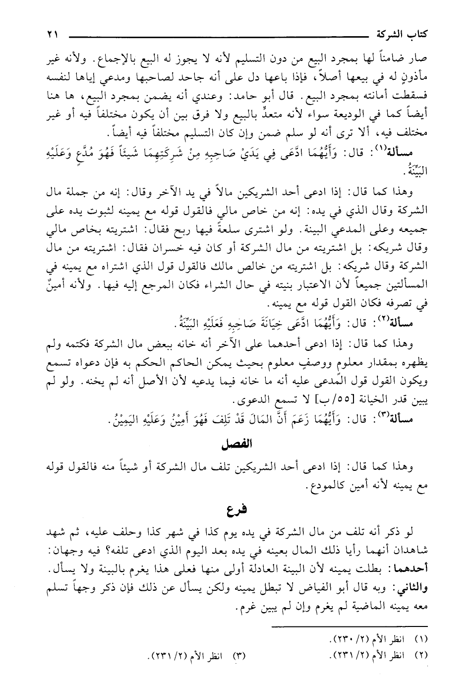 مسالة (¬2): قال: وأيهما ادعى خيانة صاحبه فعليه البينة.