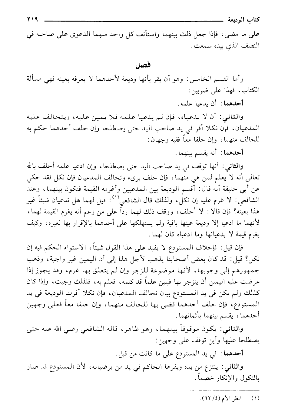 فإن قيل: فإحلاف المستودع لا يفيد على هذا القول شيئاً الاستواء الحكم فيه إن نكل؟ قيل: قد كان بعض أصحابنا يذهب لأجل هذا إلى أن اليمين غير واجبة، وذهب جمهورهم إلى وجوبها، لأنها موضوعة للزجر وإن لم يتعلق بها غرم، وقد يجوز إذا عرضت عليه اليمين أن ينزجر بها فيبين علماً قد كتمه، فعلم به، فلذلك وجبت، وإذا كان كذلك ولم يكن في يد المستودع بيان تحالف المدعيان، فإن نكلا أقرت الوديعة في يد المستودع، فإن حلف أحدهما قضي بها للحالف منهما، وإن حلفا معاً فعلى وجهين أحدهما، يقسم بينهما بأثمانهما.