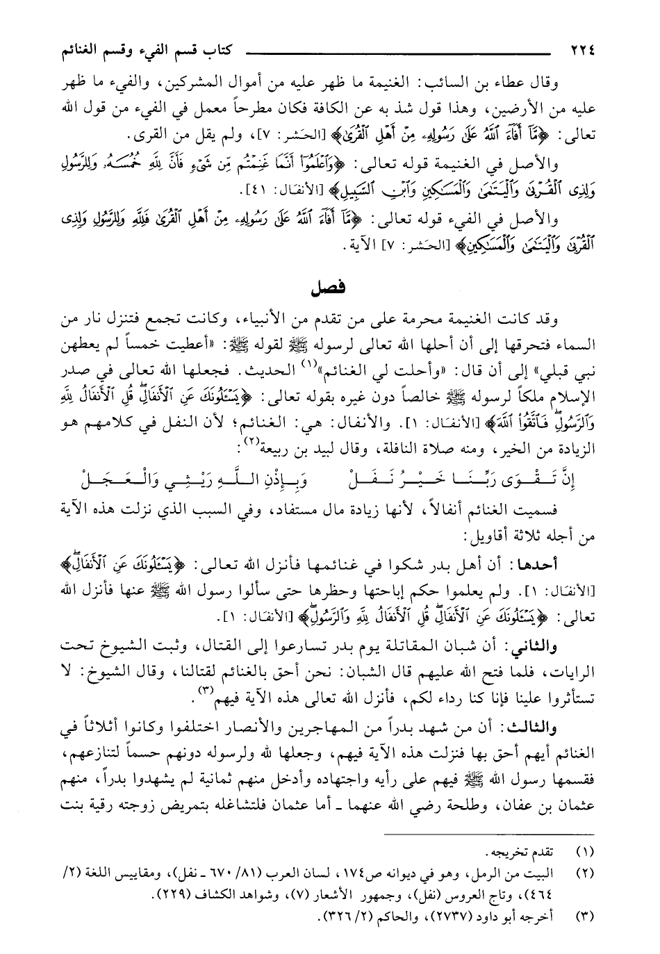 (¬2) البيت من الرمل، وهو في ديوانه ص 174، لسان العرب (81/ 670 - نفل)، ومقاييس اللغة (2/ 464)، وتاج العروس (نفل)، وجمهور الأشعار (7)، وشواهد الكشاف (229).