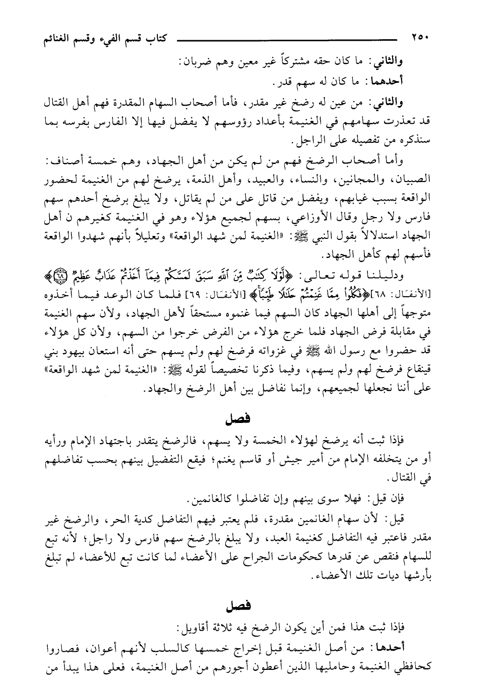 والثاني: من عين له رضخ غير مقدر، فأما أصحاب السهام المقدرة فهم أهل القتال قد تعذرت سهامهم في الغنيمة بأعداد رؤوسهم لا يفضل فيها إلا الفارس بفرسه بما سنذكره من تفصيله على الراجل.