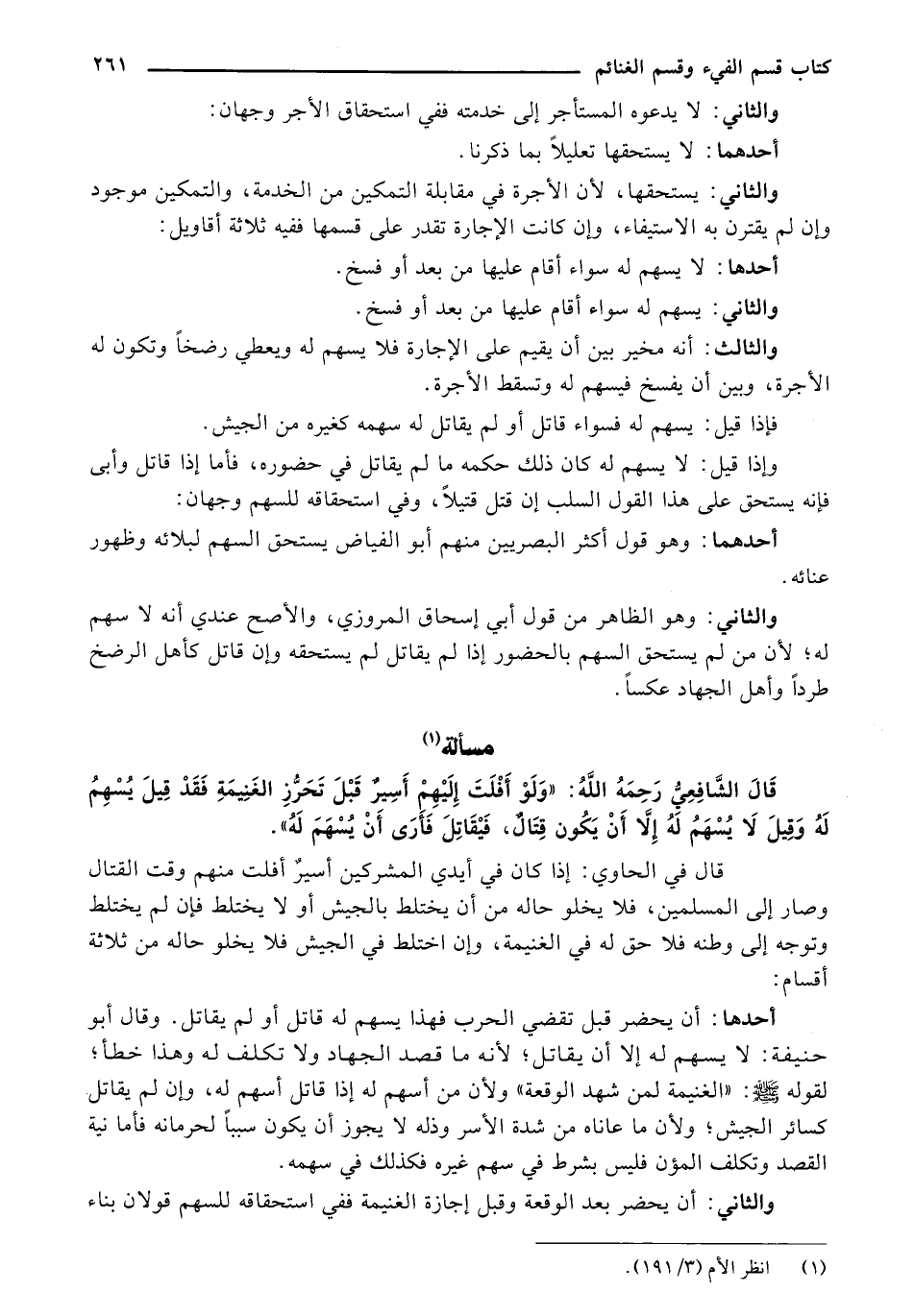 قال الشافعي رحمه الله: "ولو أفلت إليهم أسير قبل تحرز الغنيمة فمد قيل يسهم له وقيل لا يسهم له إلا أن يكون قتال، فيقاتل فأرى أن يسهم له".