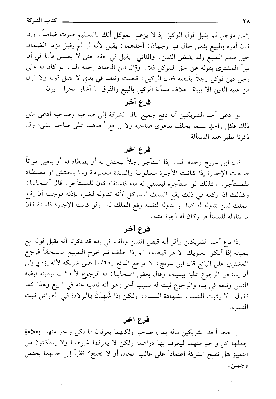 لو خلط أحد الشريكين ماله بمال صاحبه ولكنهما يعرفان ما لكل واحد منهما بعلامة جعلها كل واحٍد منهما ليعرف بها دراهمه ولكن لا يعرفها غيرهما ولا يتمكنون من التمييز هل تصح الشركة اعتمادًا على غالب الحال أو لا تصح؟ نظرًا إلى حالهما يحتمل وجهين.