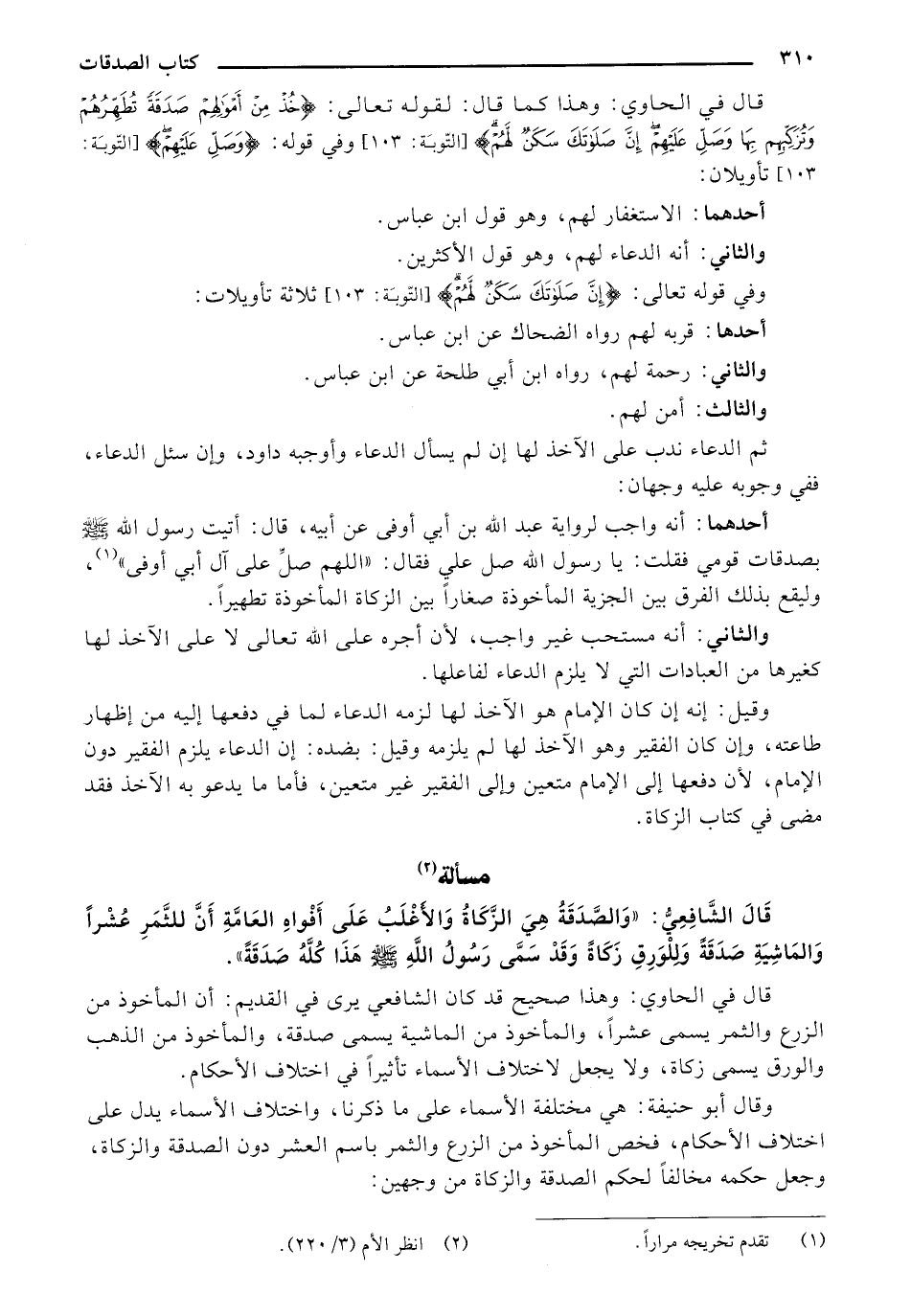 قال في الحاوي: وهذا كما قال: لقوله تعالى: {خُذْ مِنْ أَمْوَالِهِمْ صَدَقَةً تُطَهِّرُهُمْ وَتُزَكِّيهِمْ بِهَا وَصَلِّ عَلَيْهِمْ إِنَّ صَلاتَكَ سَكَنٌ لَهُمْ} [التوبة:103] وفي قوله: {وَصَلِّ عَلَيْهِمْ} [التوبة:103] تأويلان:
