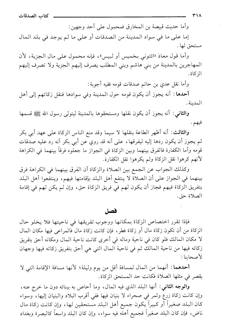وكذلك الجواب عن الجمع بين الصلاة والزكاة أن الفرق بينهما في الكراهة فرق بينهما في الجواز على أن الصلاة لا ينتفع أهل البلد بإقامتها فيهم، وينتفعوا أهل البلد بتفريق الزكاة فيهم فجاز أن يكون لهم في فريق الزكاة حق، وإن لم يكن لهم في إقامة الصلاة حق.