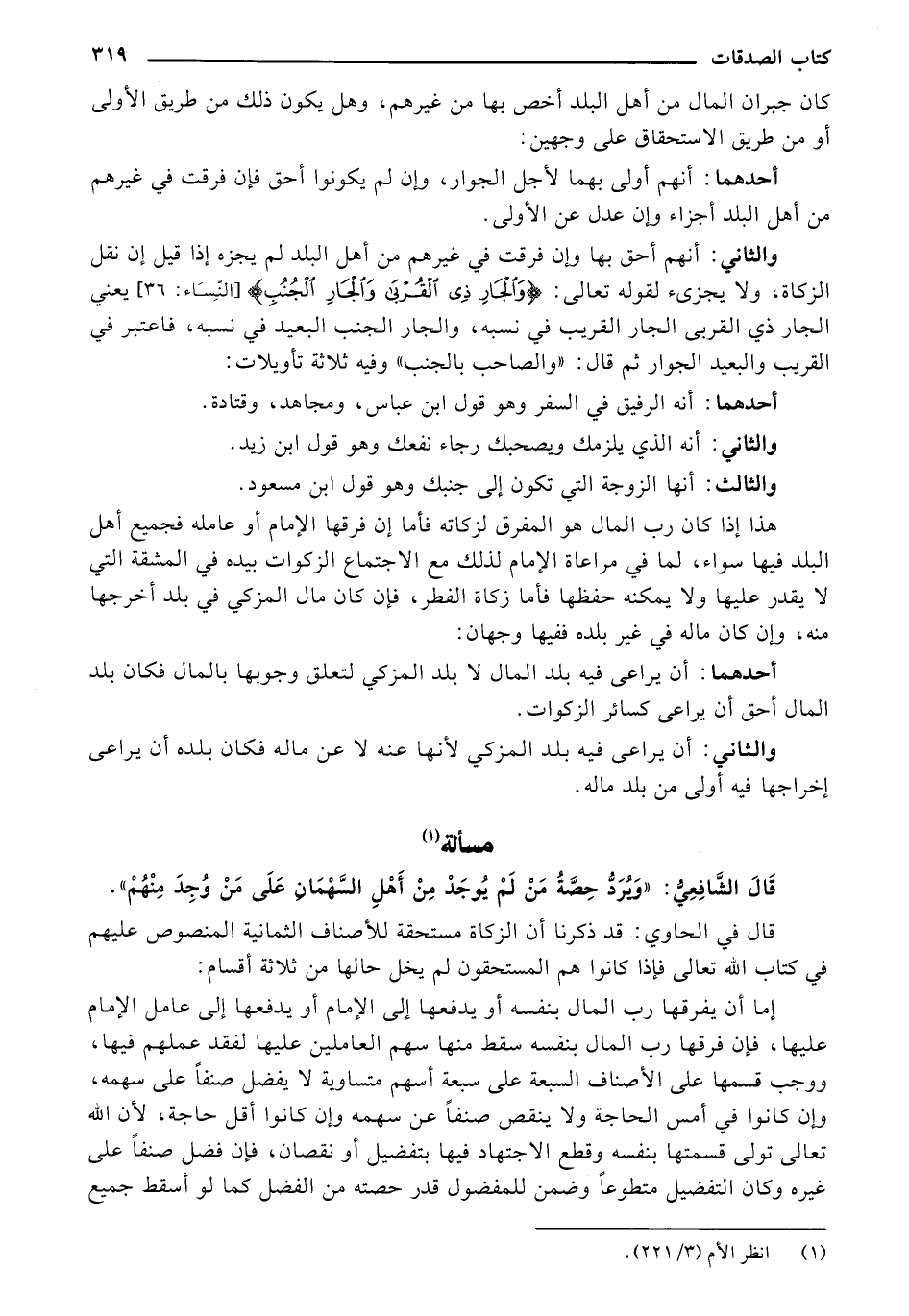 والثاني: أنهم أحق بها وإن فرقت في غيرهم من أهل البلد لم يجزه إذا قيل إن نقل الزكاة، ولا يجزئ لقوله تعالى: {وَالْجَارِ ذِي الْقُرْبَى وَالْجَارِ الْجُنُبِ} [النساء:36] يعني الجار ذي القربى الجار القريب في نسبه، والجار الجنب البعيد في نسبه، فاعتبر في القريب والبعيد الجوار ثم قال: "والصاحب بالجنب" وفيه ثلاثة تأويلات: