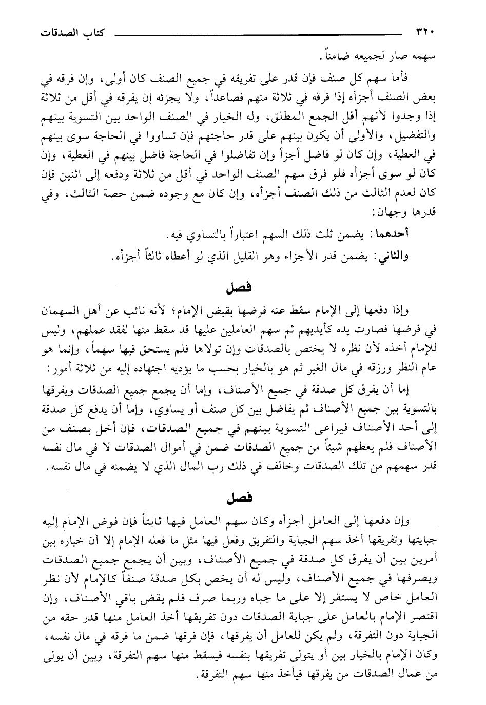 وإذا دفعها إلى الإمام سقط عنه فرضها بقبض الإمام؛ لأنه نائب عن أهل السهمان في فرضها فصارت يده كأيديهم ثم سهم العاملين عليها قد سقط منها لفقد عملهم، وليس للإمام أخذه لأن نظره لا يختص بالصدقات وإن تولاها فلم يستحق فيها سهماً، وإنما هو عام النظر ورزقه في مال الغير ثم هو بالخيار بحسب ما يؤديه اجتهاده إليه من ثلاثة أمور: