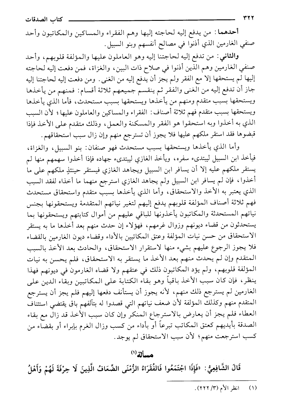 قال الشافعي: "فإذا اجتمعوا فالفقراء الزمني الضعاف الذين لا حرفه لهم وأهل